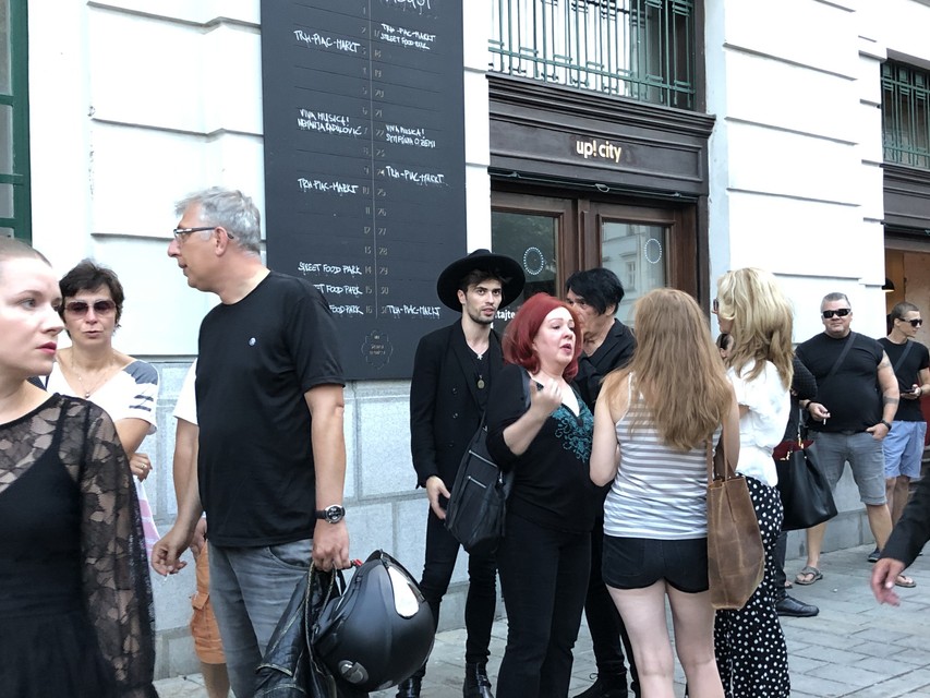 Na pódiu vystúpili Petrova priateľka Mirka, jeho dcéra Mária z prvého manželstva a mladšia sestra Katarína. Ako prvá sa lúčila o jeho o 4 roky mladšia sestra Katka.