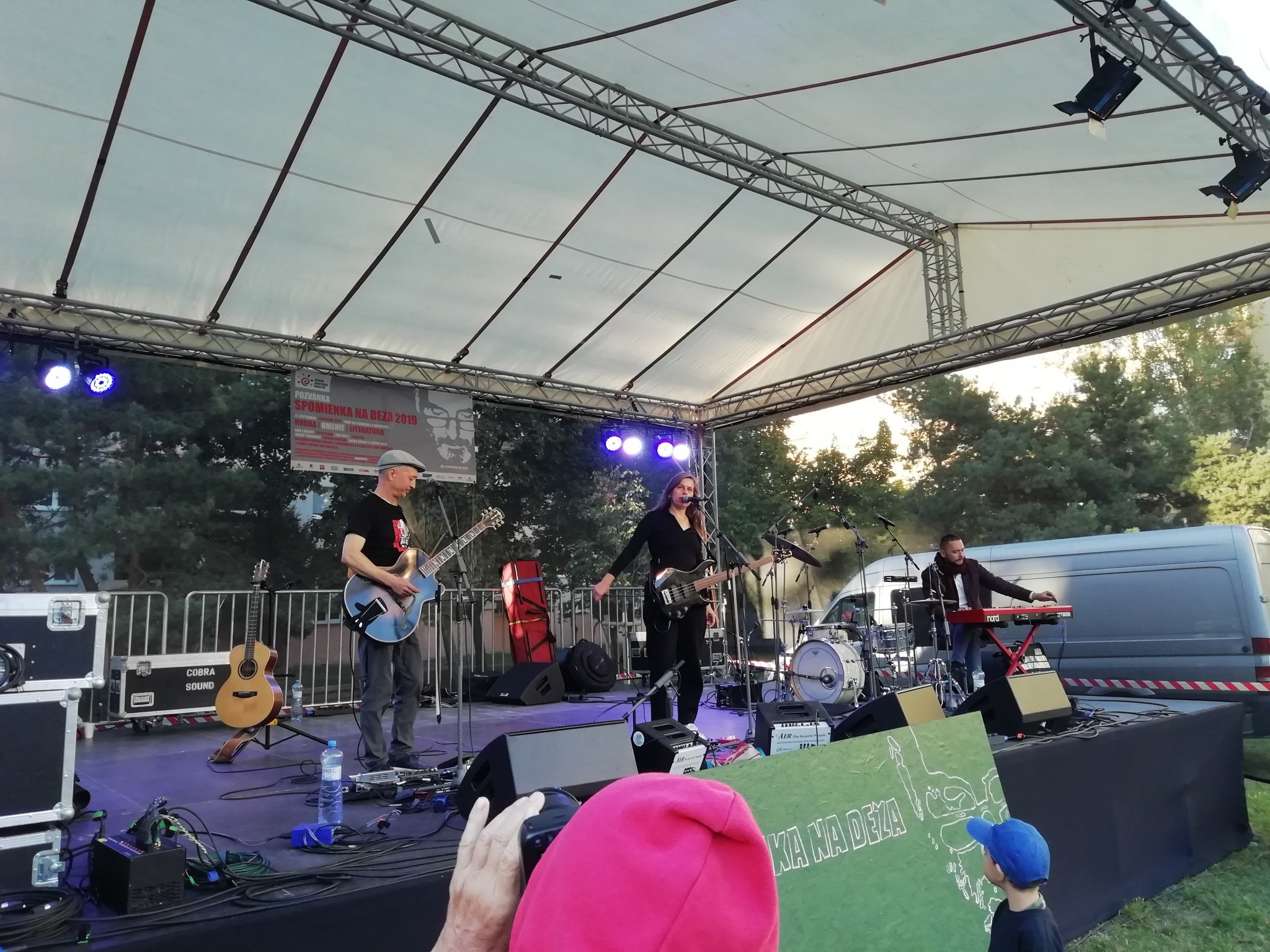 Hlavný program tohtoročnej Spomienky na Deža sa začal o 14:00 h. Pódium dnes patrilo a ešte bude patriť kapelám Kam z konopí, Definitívum, Živé kvety (na úvodnej fotografii) , Longital, Talent Transport, Dorota Nvotová, Jakub Ursiny & Teatro fatal.