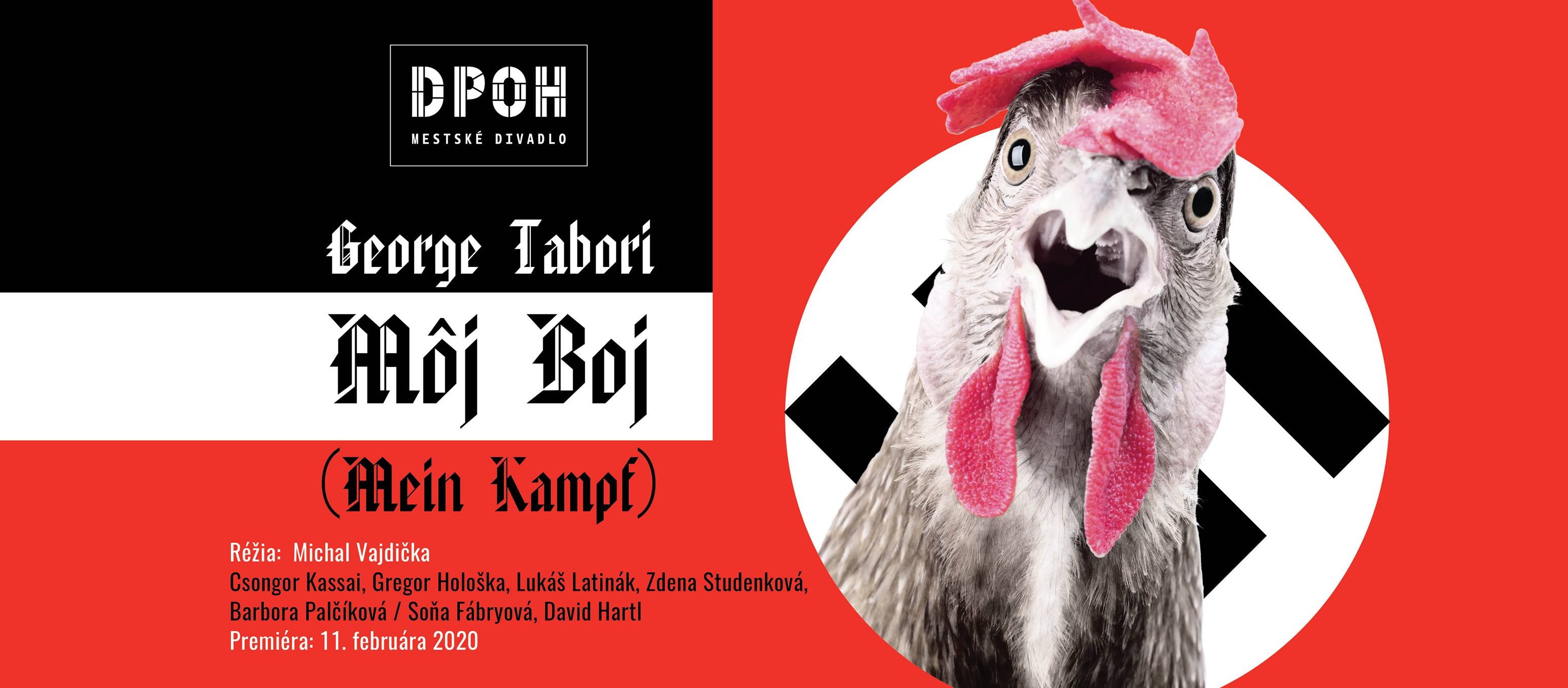 "Kdekoľvek na svete sa inscenuje ktorákoľvek hra Georga Taboriho (v MDPOH v minulosti Goldbergovské variácie), stáva sa pre divadlo výnimočnou udalosťou. Jeho hry prinášajú provokatívne témy. Nie však v obviňujúcich polohách, ale v sarkastickej a humornej groteske, s nečakaným všetko odpúšťajúcim humorom a nadhľadom. O to účinnejšie pôsobia na diváka. Tabori, ktorý v koncentračných táboroch stratil väčšinu príbuzných, má právo na tento provokatívny pohľad. Hra Môj boj (Mein Kampf) nie je výnimkou. Jej brilantný jazyk si berie na paškál nielen nacistického vodcu, ale tiež povahu Židov. Hra nás privádza na úplný začiatok. Mladík Hitler, zakomplexovaný, chudobný a netalentovaný maliar “zvierat, ľudí a vecí v pološere”, trpiaci chronickou zápchou sa objavuje v nocľahárni podporovanej viedenskou židovskou komunitou. Ako mladý a neskúsený chlapec milujúci operu sa vydáva do Viedne, kde by rád študoval na výtvarnej akadémii. A práve tu, vďaka podpore a starostlivej láskyplnej opatere Židom Herzlom, štartuje jeho kariéra vodcu a jednej z najväčších beštií našich dejín. Stretnutie tejto paradoxnej dvojice sa stáva komickou predohrou k udalostiam, ktoré ľudstvo zažilo o niekoľko rokov neskôr. Inscenácia poukazuje na to, ako ľahko sa z priemerného človeka môže stať nebezpečný manipulátor. Jej komickosť je v tom, že si pohráva s postavou Adolfa Hitlera a s myšlienkou „čo by sa stalo, keby…“ píše sa na stránke MDPOH, pričom hra je sprevádzaná a propagovaná týmto plagátom: