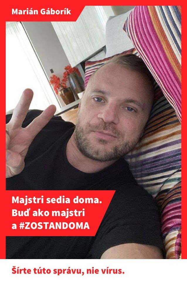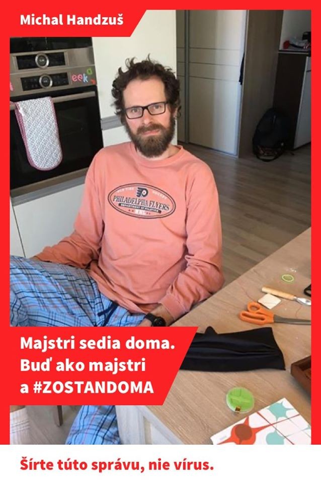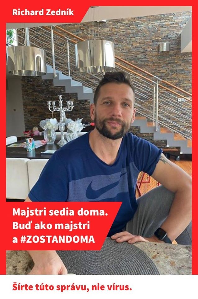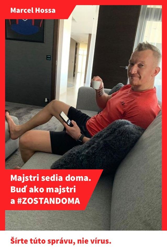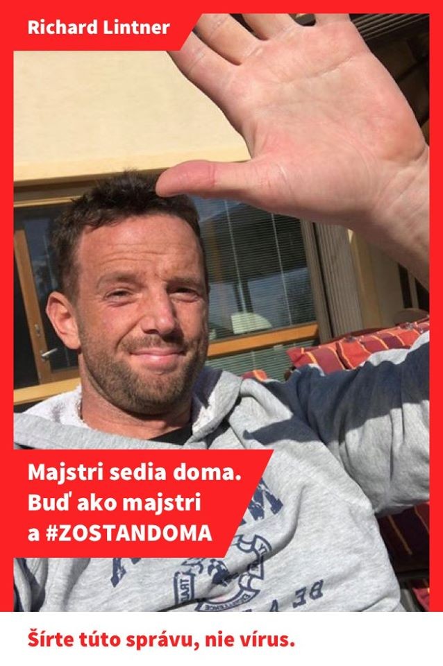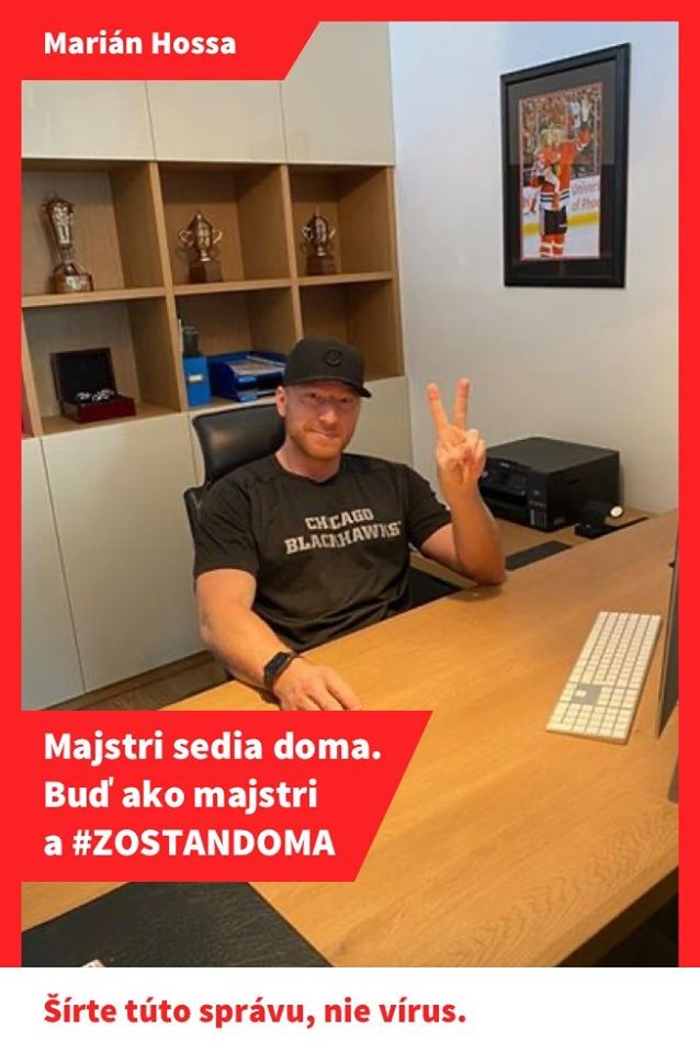 „Majstri sedia doma. Buď ako majstri a #zostandoma,“ vyzýva jeden z príspevkov online iniciatívy Zostaň doma/Som doma. Na fotografiách sú hokejoví majstri – Richard Lintner, Ľubomír Višňovský, Michal Handzuš, Marián Gáborík, bratia Hossovci a iní.
