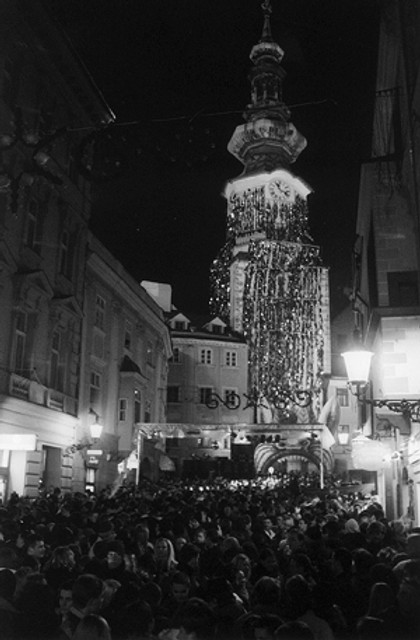 Niekoľko sekúnd pred polnocou sa na Hlavnom námestí spustila premiéra novej bratislavskej atrakcie - laserového orloja. V tej chvíli však tisícky Bratislavčanov čakali na začiatok azda najveľkolepejšieho bratislavského ohňostroja v posledných rokoch, ktorý pár minút po polnoci osvetlil oblohu nad hradným vrchom.