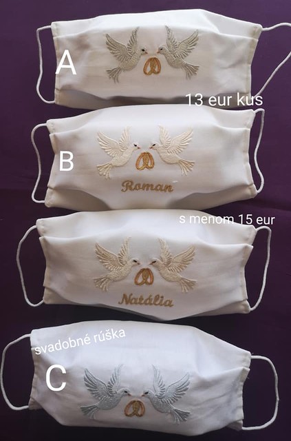 Súčasné svadby sú rozhodne netradičné, v každom prípade nezabudnuteľné. Jeden zo zmyslov svadobnej hostiny, teda prepojiť a spoznať rodinných príbuzných z opačnej strany, sa celkom stratil. A aby vám na svadobnej fotografii z kostola nebolo cez kus látky vidno tvár, bolo donedávna niečo nepredstaviteľné. Hoci Ján Rábara tvrdí, že mladomanželom spraví minimálne polovicu svadobných exteriérových fotografií, na ktorých sú bez rúšok (hoci on ho má stále), aj tak sa na svadobných portáloch objavil nový módny hit, tzv. svadobné rúško. A že sú rozmanité... Od saténových s čipkami, až po tie s kamienkami, iniciálkami, menami, srdiečkami, dátumami, holubicami....