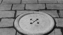 „Gombík” Petra Rollera v pouličnej dlažbe na Františkánskom námestí.