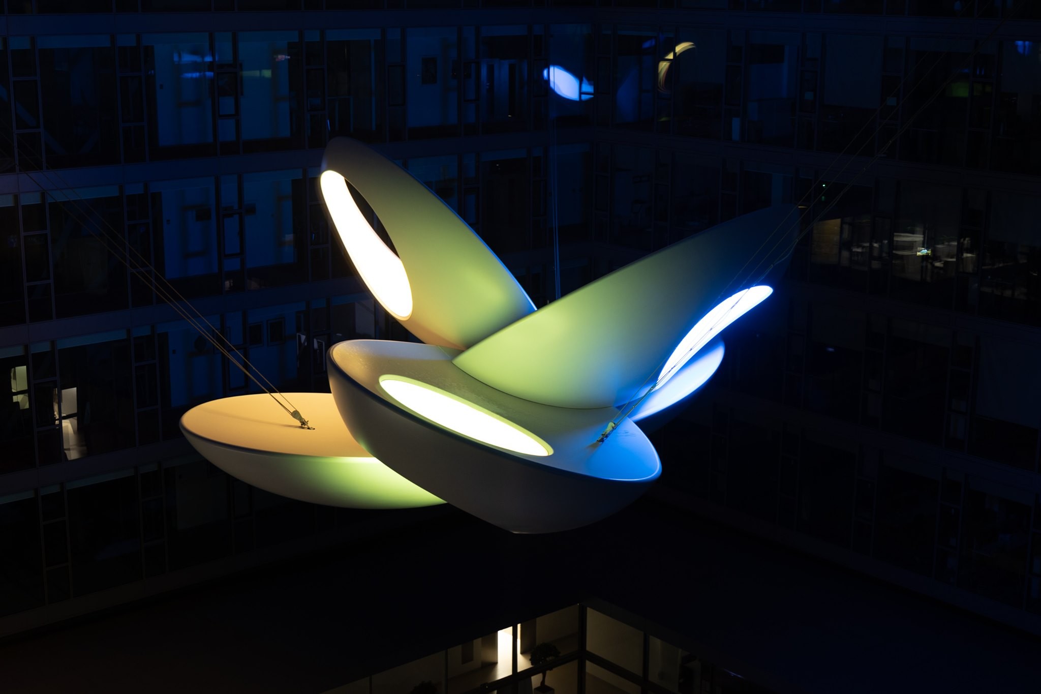 Svoju prechádzku môžte začať aj v Átriu Slovenskej sporiteľne, kde okrem iného zažijete aj levitujúce, monumentálne dielo manželov Kubinských SKY, výnimočne sprístupnené návštevníkom Bielej noci.