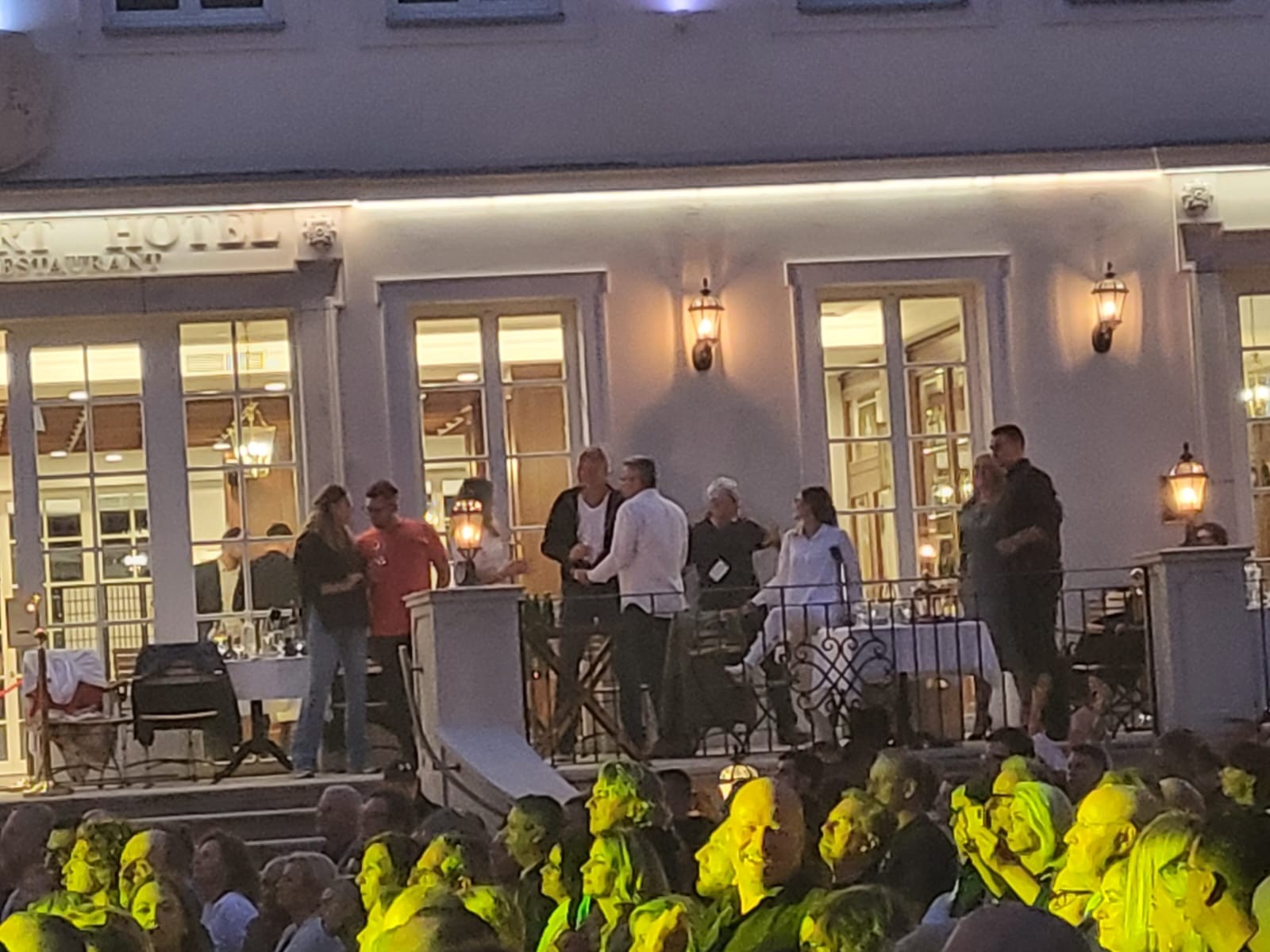 Prezidentka Zuzana Čaputová s partnerom Jurajom Rizmanom si koncert užívali na jednom z hotelových balkónov (na foto vpravo)