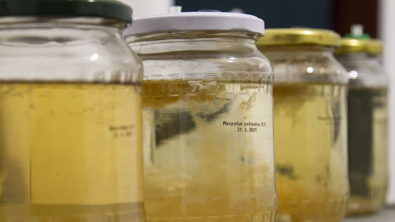 Schádzame do podzemia okolo rampy a výťahu. Kedysi tu boli mrazáky, sklady a šatne pre mäsiarov, dnes je tu nahrávacie štúdio, dielňa, posilňovňa, taká typická sídlisková, a laboratórium na prácu s hubami a lišajníkmi. „Toto sú hubové kultúry rôznych jedlých alebo liečivých húb, ktoré žijú v tekutom stave,“ ukazuje na poličku. „Keď ich chce človek pestovať, vyberie si roztok injekčnou striekačkou, pichne ho do substrátu a huba začne rásť. Pôjde stále o tú istú hubu. Ja som ich zobral z lesa, naklonoval a ten jeden organizmus stále prežíva ďalej.“ Cítim sa ako v sci-fi filme, hovorím mu. „Pre pestovateľ húb bežná vec,“ reaguje on a berie do ruky veľký zaváraninový pohár. Je v ňom miso pasta. Pripomína mi hrachovú kašu, ale je to kombinácia cíceru a ryže. Jonáš vysvetľuje, že ryža bola „naočkovaná“ hubou, následne ju upiekli a enzýmy z huby teraz pôsobia na strukoviny. Už rok rozkladajú bielkoviny, pasta zreje a napokon sa premení na piatu chuť. Volá sa umami. V Japonsku ju vraj používajú tak, že ju zmiešajú s vodou a majú vývar.