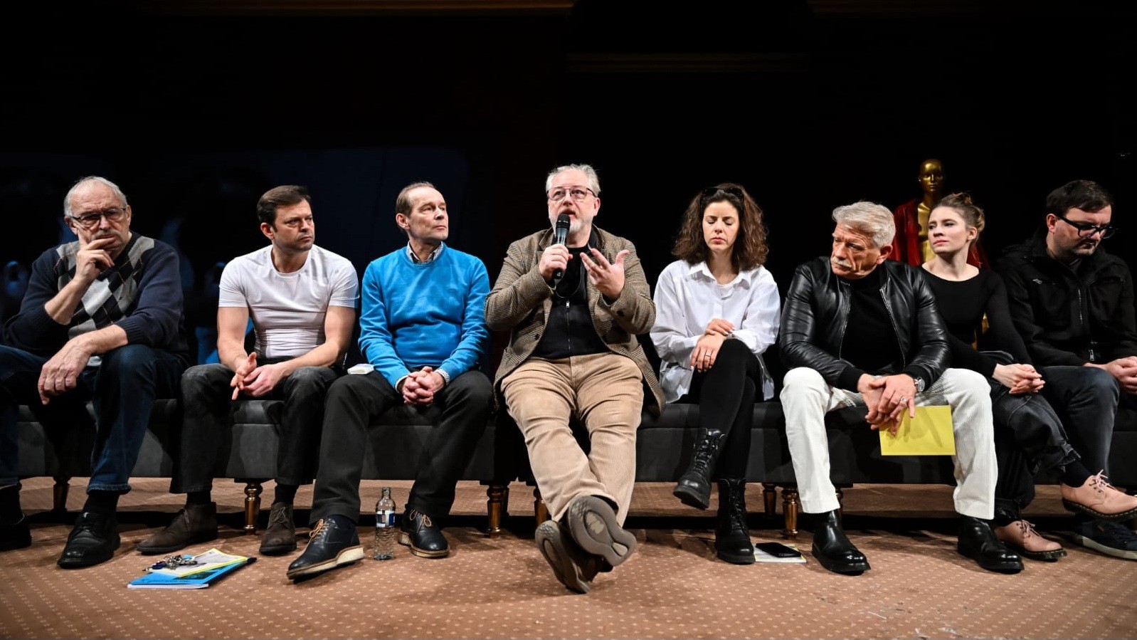 Zľava herci František Kovár, Alexander Bárta, Ján Gallovič, režisér David Jařab, herečka Ivana Kuxová, herec Richard Stanke, herečka Jana Kovalčíková, dramaturg Daniel Majling.