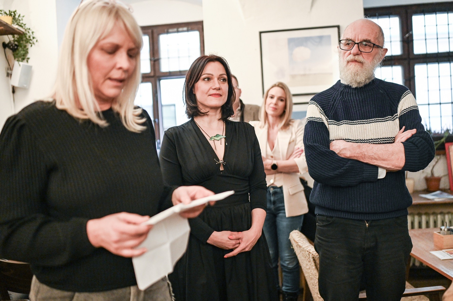 Foto: kurátorka výstavy Miriam Petráňová, Jana Šantavá, riaditeľ SEDF Václav Macek