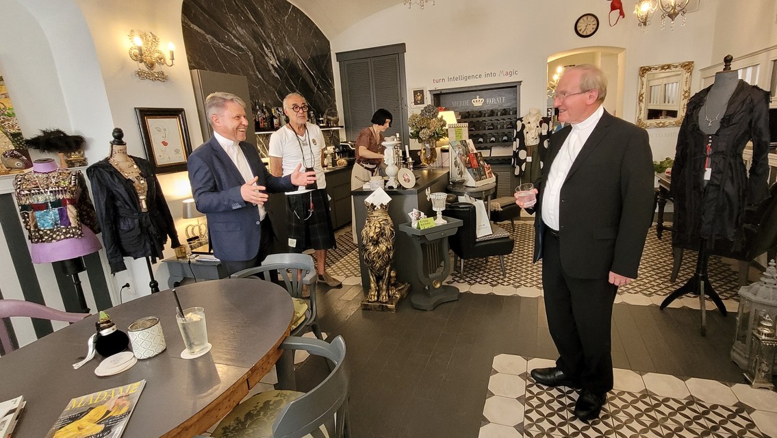 Výstavu nájdete v mimoriadne zaujímavom prostrední kaviarničky spojenej s galériou Merde Royale na Panskej 12. Tieto priestory v októbri minulého roka otvorili maliarka Kveta Greta Klein s manželom Sarkisom Gazaryanom. Greta Klein je Slovenka, ktorá žila v Austrálii, má však dvojité občianstvo. Po rokoch sa aj s rodinou vrátila na Slovensko.