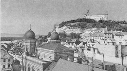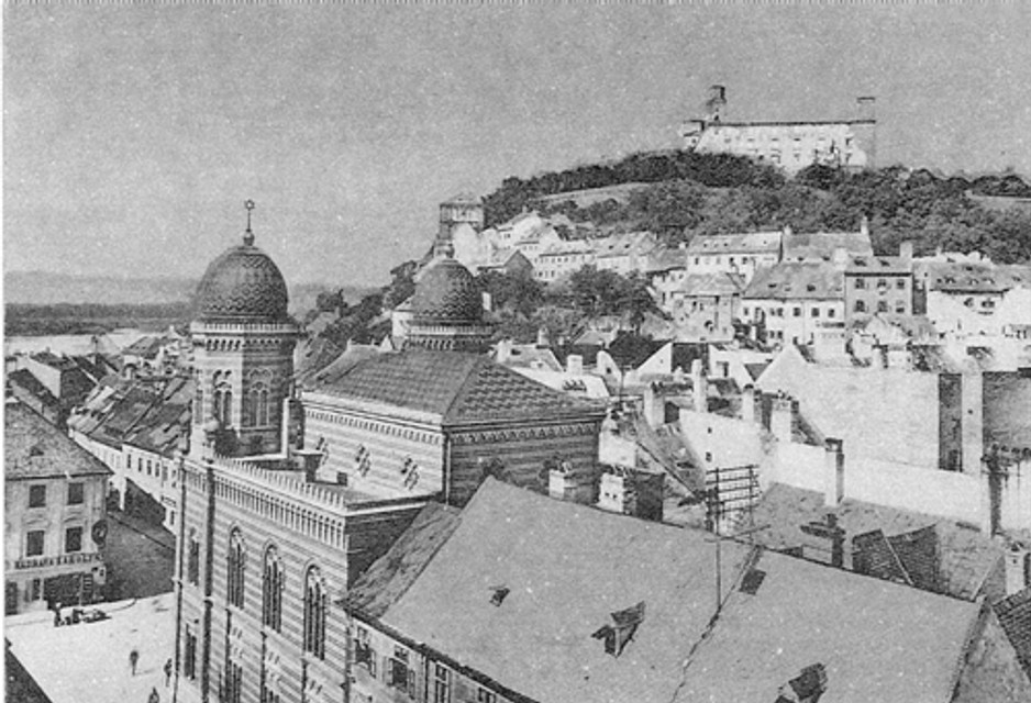 Neologická židovská synagóga vyrástla koncom minulého storočia v blízkosti kresťanského Dómu sv. Martina. Oba chrámy vedľa seba stáli vyše 70 rokov. V polovici 60. rokov však synagóga začala zavadzať budovateľom komunistickej Bratislavy a tak bola spolu s časťou zástavby podhradia zbúraná.