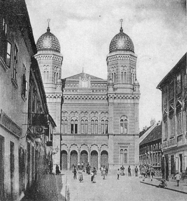 Romantická synagóga pripomínala viac orientálne arabské - maurské - stavby než židovské modlitebne. Mala dve veže a ako vrchol kacírstva bol v nej na balkóne inštalovaný organ ako v kresťanskom kostole.