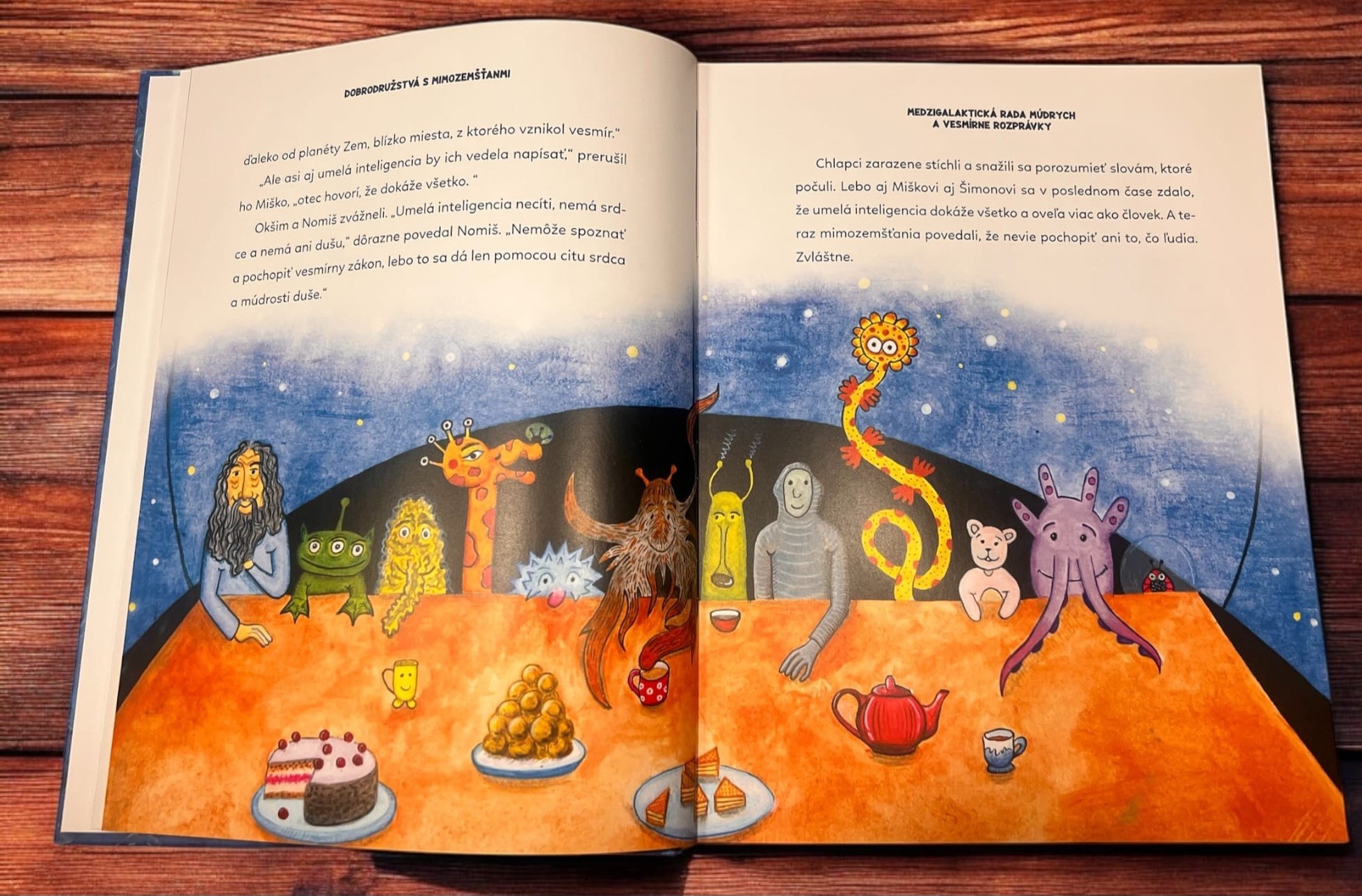 A tak sa dnes aj vy môžete ponoriť do rozprávok o dvoch mimozemšťanoch, ktorí sa spriatelili s dvoma chlapcami a spolu prežili úžasné dobrodružstvá. Na pár hodín sa stanú neviditeľnými, počas obeda zrušia zemskú príťažlivosť v školskej jedálni, spolu s pani učiteľkou podniknú výpravu do hlavy spolužiaka, aby mu pomohli s nízkym sebavedomím... Vycestujete s nimi do vesmíru opraviť planétu Matematika, a tiež môžete nazrieť aj do sveta budúcnosti. Mimozemšťania však počas svojho pozemského pobytu vyrozprávali chlapcom aj štyri zvláštne rozprávky obsahujúce vesmírne zákony. Tie poznali bytosti na všetkých planétach vo vesmíre a na všetkých planétach ich aj dodržiavali. Každý z vesmírnych zákonov vyjadroval hodnoty, podľa ktorých by sme sa mali všetci správať, aby sme neubližovali ani sebe, ani svojej planéte. Vhodným spôsobom pre deti – cez napínavé rozprávky - vysvetľujú napríklad, že vládnuť znamená slúžiť druhým, že najnebezpečnejším nepriateľom ľudí je hlúposť. Aj to, že ľudia sa boja jeden druhého len vtedy, ak navzájom nepoznajú svoje príbehy a že skutočná pomoc môže prísť len cez lásku.