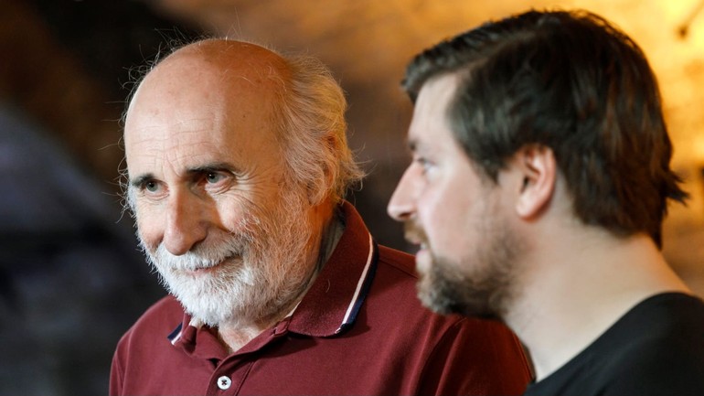 Herci Peter Šimun (Harpagon) a Pavol Šimun (Kleant) počas tlačovej konferencie po verejnej generálke inscenácie Lakomec alebo škola lžíBratislavské Divadlo Astorka Korzo ‘90 uvedie 11. júna v Štúdiu A2 premiéru inscenácie Moliérovej hry Lakomec alebo Škola lží.