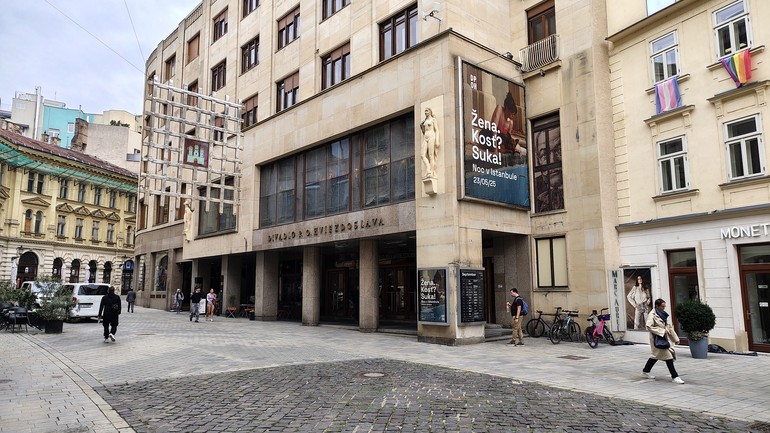 Slovenské národné divadlo zápasilo od založenia v roku 1920 s nedostatočným počtom hracích priestorov, a tak Ministerstvo školstva a národnej osvety požiadalo začiatkom roka 1941 vedenie Slovenskej národnej banky, aby vo svojom novom sídle vyčlenila priestory aj pre činohernú scénu SND. Keď teda banka vypísala 1. augusta verejnú súťaž, žiadala do projektu okrem reprezentačných priestorov, obchodov, kancelárií a bytov zahrnúť aj divadelnú časť.