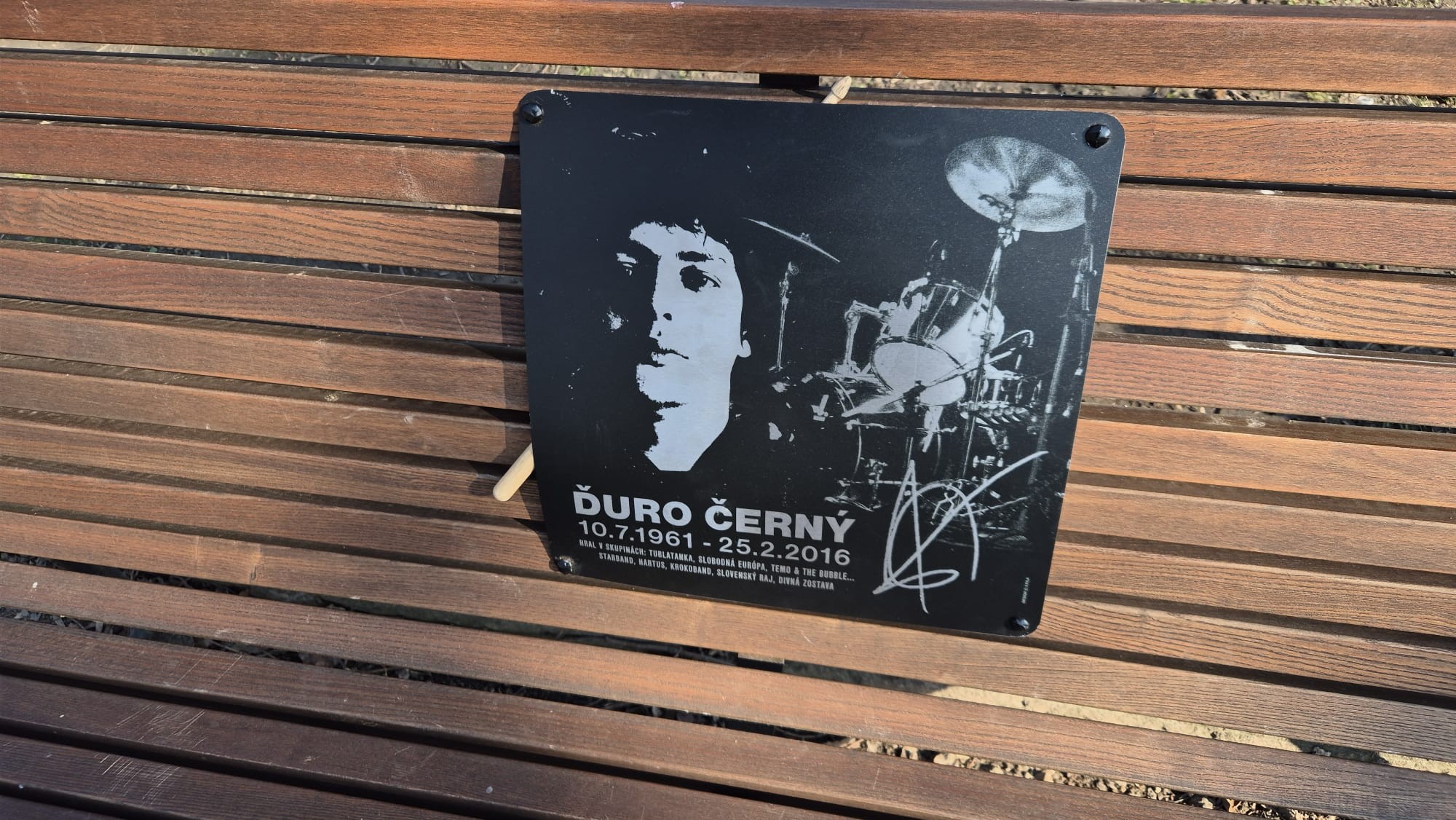 V parku na Račianskom mýte má po spevákovi Miroslavovi Žbirkovi svoju pamätnú lavičku ďalší skvelý bratislavský hudobník. Od stredy (25.2.) tu neďaleko podniku Malý Bajkal nájdete aj lavičku venovanú spomienke na zosnulého bubeníka skupiny Tublatanka Ďura Černého.
