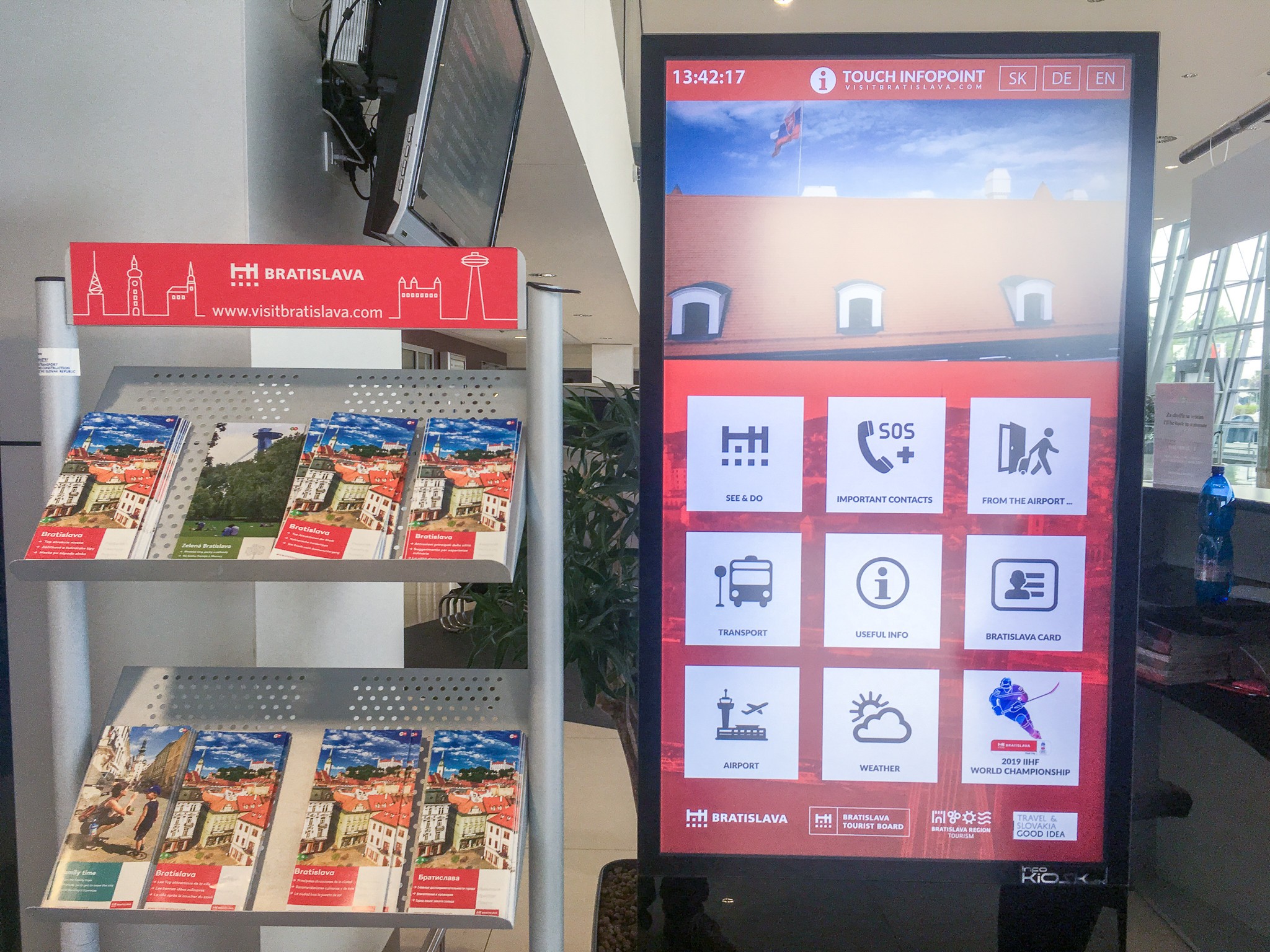 Na kioskoch nájdete papierové informačné letáky v rôznych jazykoch a tiež veľkú mapu. Okrem digitálnych kioskov sa hneď vedľa nachádza informačný pult, v ktorom nám zamestnankyňa ochotne poradila.