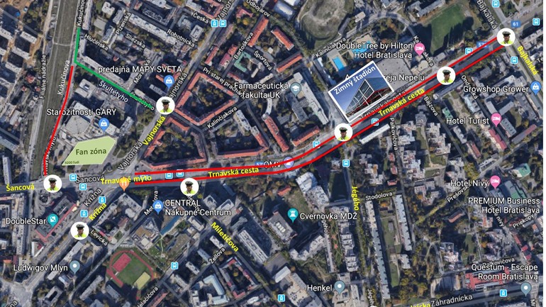 "V prípade, ak si to bude vyžadovať dopravno-bezpečnostná situácia bude pre individuálnu dopravu uzatvorená Trnavská cesta v úseku od Bajkalskej ul. po Trnavské mýto a od Jégeho ulice. K takejto situácii môže dôjsť najmä pred začiatkami zápasov a po ich ukončení. V čase otvorenia fanzóny, čiže od 11.00 h v dňoch kedy sa hrajú tri zápasy a od 13.00 h v dňoch kedy sa hrajú dva zápasy, bude pre individuálnu dopravu uzatvorená Kukučínová ul. v úseku od Šancovej po Škultétyho ul," informuje polícia na svojom Facebooku.