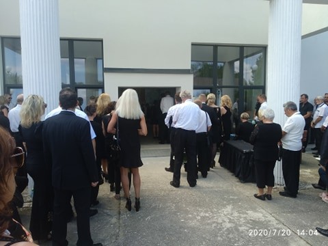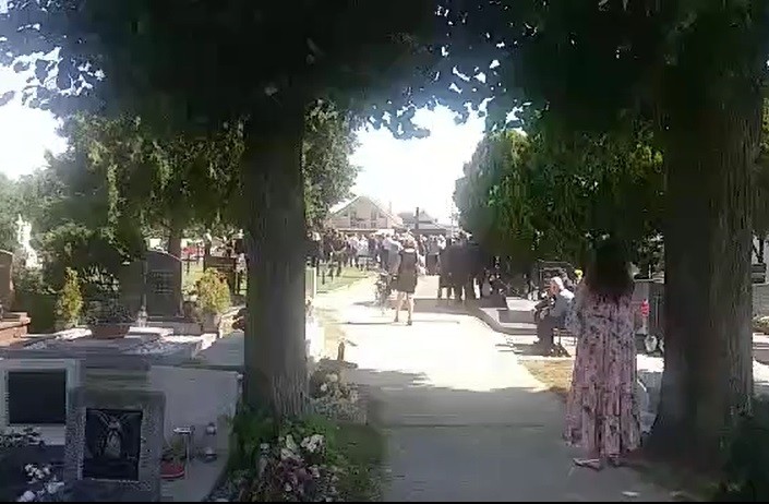 Pred vchodom do areálu cintorína, kde sa nachádza aj Dom smútku, stálo dokonca aj služobné vozidlo obecnej polície a jeho dvojčlenná posádka dozerala na poriadok v okolí a usmerňovala vodičov osobných automobilov s evidenčnými číslami z celého Slovenska, ktorí sa snažili v blízkosti miesta poslednej rozlúčky zaparkovať.