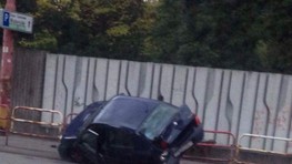 FOTO: Auto skončilo na zábradlí, ale podľa polície to nebola dopravná nehoda!