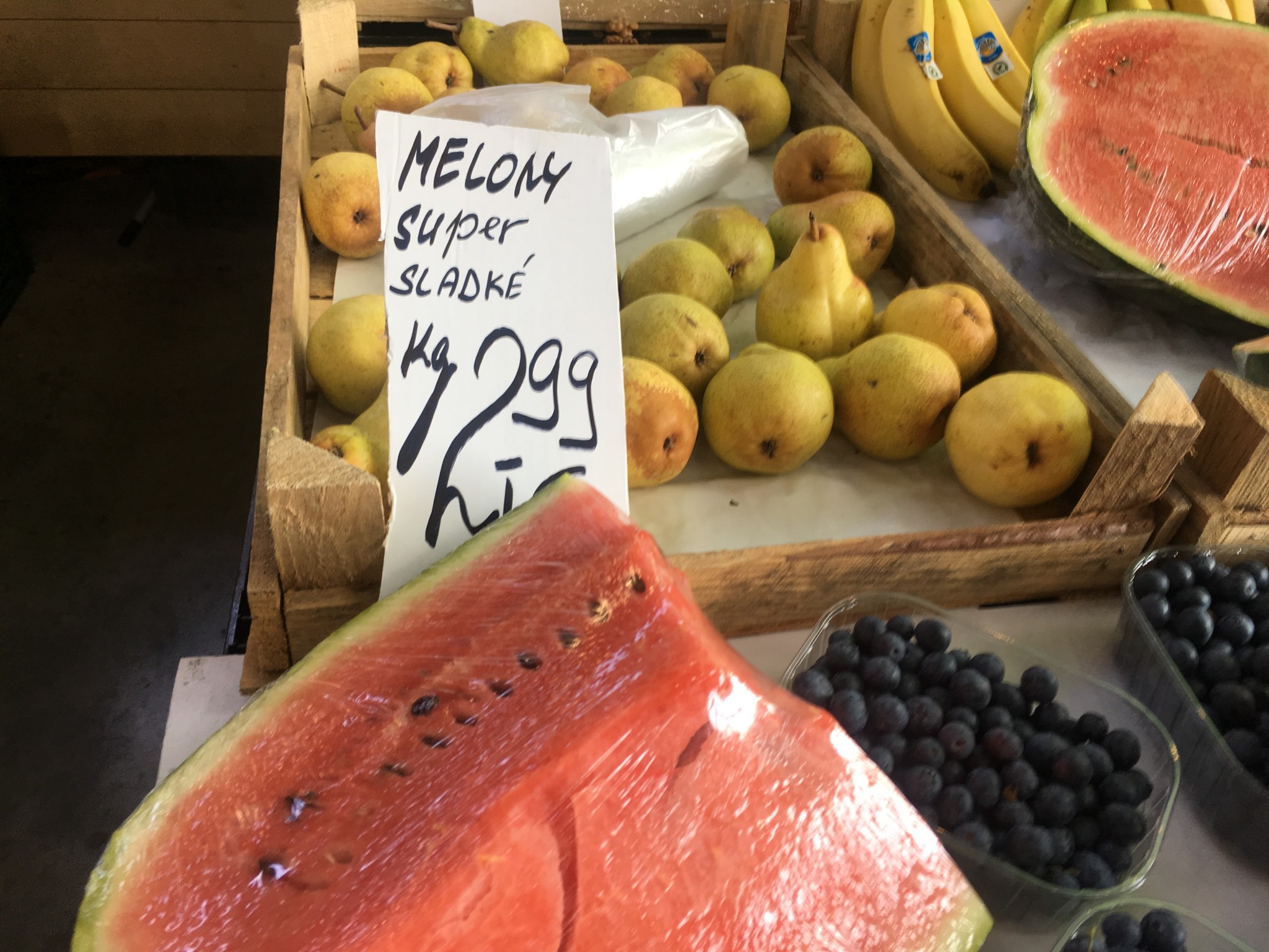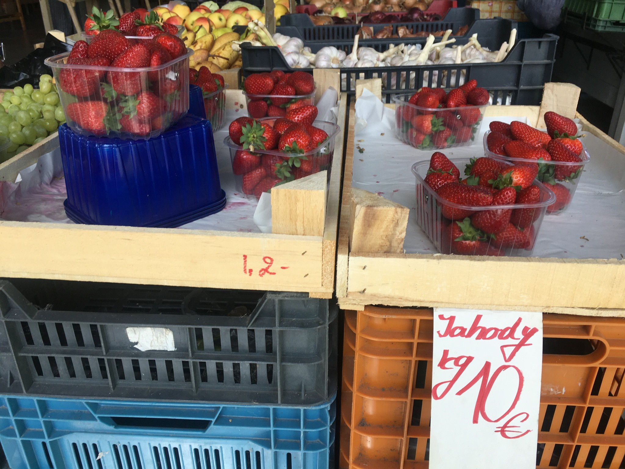 Ako prvé miesto sme zvolili farmársku tržnicu Fresh Market na Rožňavskej. V stánku, ktorý sa nachádza v strede tržnice, ponúkajú melóny z Brazílie, za kilo zaplatíte 2,99 eur, ak vám zachutia jahody, tu majú v ponuke super sladké a zaplatíte 2,2 eur za ½ kila. Hneď oproti v stánku nájdete podobné jahody až za 5 eur za ½ kg! Melón tu majú v ponuke tiež, zaplatíte však viac- až 4,9 za kilogram.