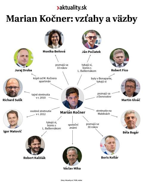 Podľa Denníka N to povedal obvinený podnikateľ z Komárna Zoltán Andruskó, ktorý ako jediný spolupracuje s políciou. Tieto informácie má od ďalšej obvinenej Aleny Zsuzsovej, ktorá sa kvôli vražde obrátila práve na Andruska. Obvinení sú ešte ďalší dvaja. Tomáš Szabó, ktorý mal vraždu vykonať a Miroslav Marček, ktorý ho mal doviezť na miesto vraždy. Portál aktuality.sk následne zverejnil pavučinu známych tvárí okolo Mariána Kočnera. Medzi nimi sú aj známi Bratislavčania a vysokí politici. Tu sú ich reakcie pre banoviny.sk: