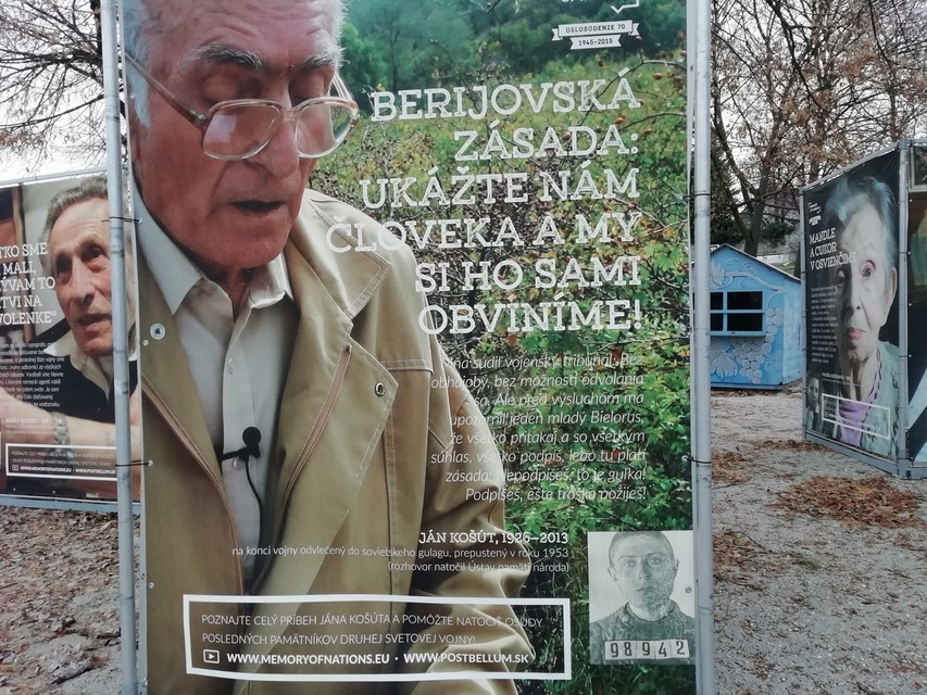 Výstava sa koná pri parkovisku pod hradom Devín, navštíviť ju môžete do konca roka. Na štyroch panelových vežiach sa zoznámite s príbehmi 14 ľudí, ktorí prežili totalitné režimy na vlastnej koži. Patrí k nim aj príbeh vojaka Ondreja Hiadlovsjkého, ktorý prešiel zo strany slovenskej armády k partizánom. Aby si získal ich dôveru, ponúkol jedného z nemeckých vojakov cigaretou a následne mu podrezal hrdlo. Druhého Nemca zastrelil. Ďalší z panelov patrí napríklad Valérii Slezákovej (1923), ktorá prežila koncentračné tábory Osvienčime aj Birkenau či Štefánii Lorándovej (1919 – 2012), ktorá výrobou falošných dokladov zachránila stovky ľudí.