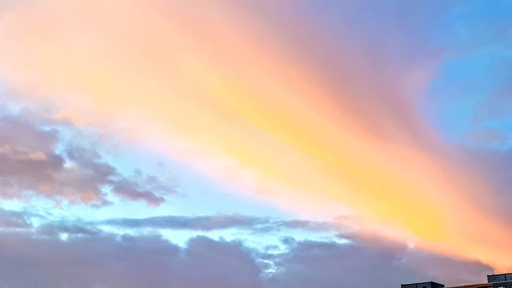 "Rada fotím oblohu, ale takéto niečo som ešte ani raz na nebi nevidela," skonštatovala pani Júlia, ktorá býva na ulici Pavla Horova v Devínskej Novej Vsi. "Doslova som onemela úžasom, keď som to prvýkrát zbadala. Bolo krátko po šestnástej hodine poobede. Potom som utekala do izby po mobil, aby som to stihla odfotiť." Svoje fotografie zverejnila ako koláž na sociálnej sieti, kde jej ich pochválili jej známe, ktoré farebný pás nad domami prirovnali k závesu.