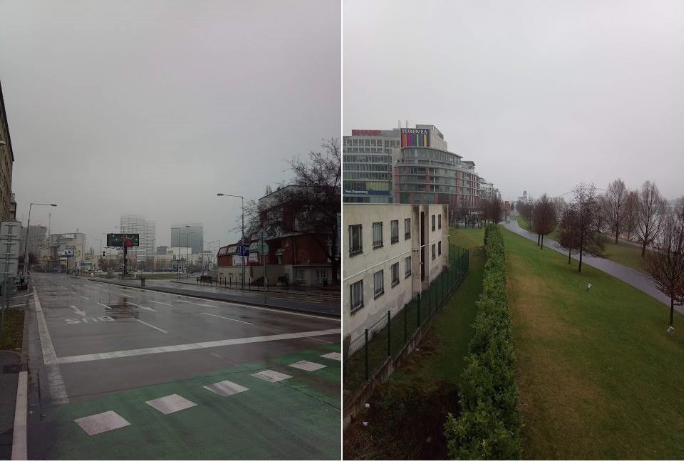 Nábrežie armádneho generála Ludvíka Svobodu bez áut, električiek a ľudí. Takisto pusto bolo aj na Obchodnej...