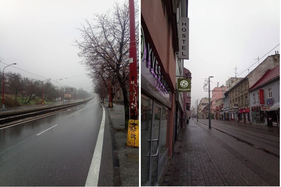Len sochy detí v Kačacej fontáne na Šafárikovom námestí pripomínali ľudí, kým Štúrova bola úplne "vymretá"...