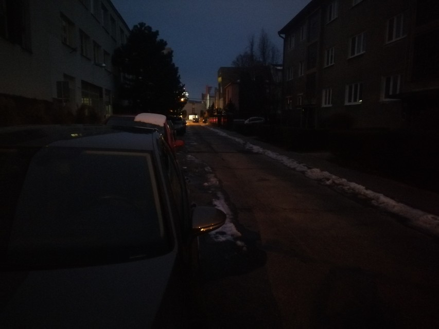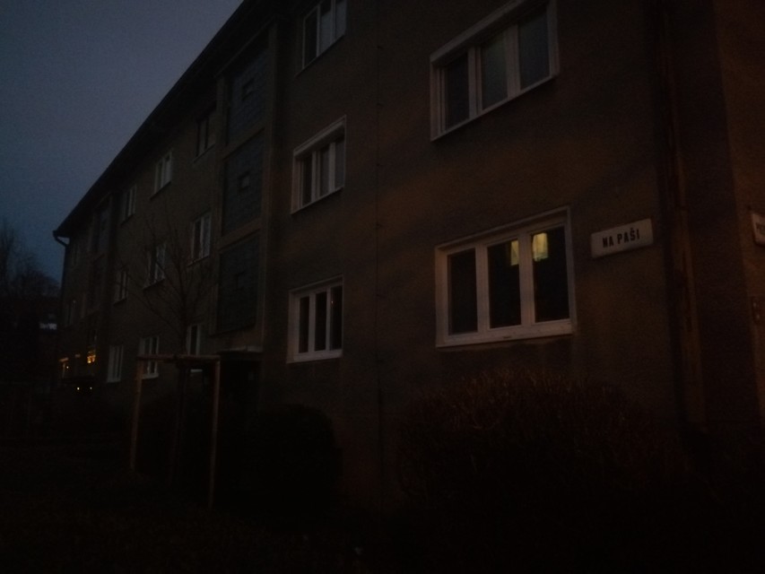 Ako nám sama rozpovedala, predtým tu na čas boli umiestnené dva drevené stĺpy, na ktorých bolo namontované svetlo, neskôr sa však upustilo aj od toho. Momentálne jedinými záchytnými svetlými bodmi sú svetlo z multifunkčnej budovy oproti tejto obytnej budove a vchodové svetlo budovy, ktoré sa však zapne iba vo chvíli, kým si človek otvorí bránu a ďalej ulicou musí kráčať po tme naslepo.