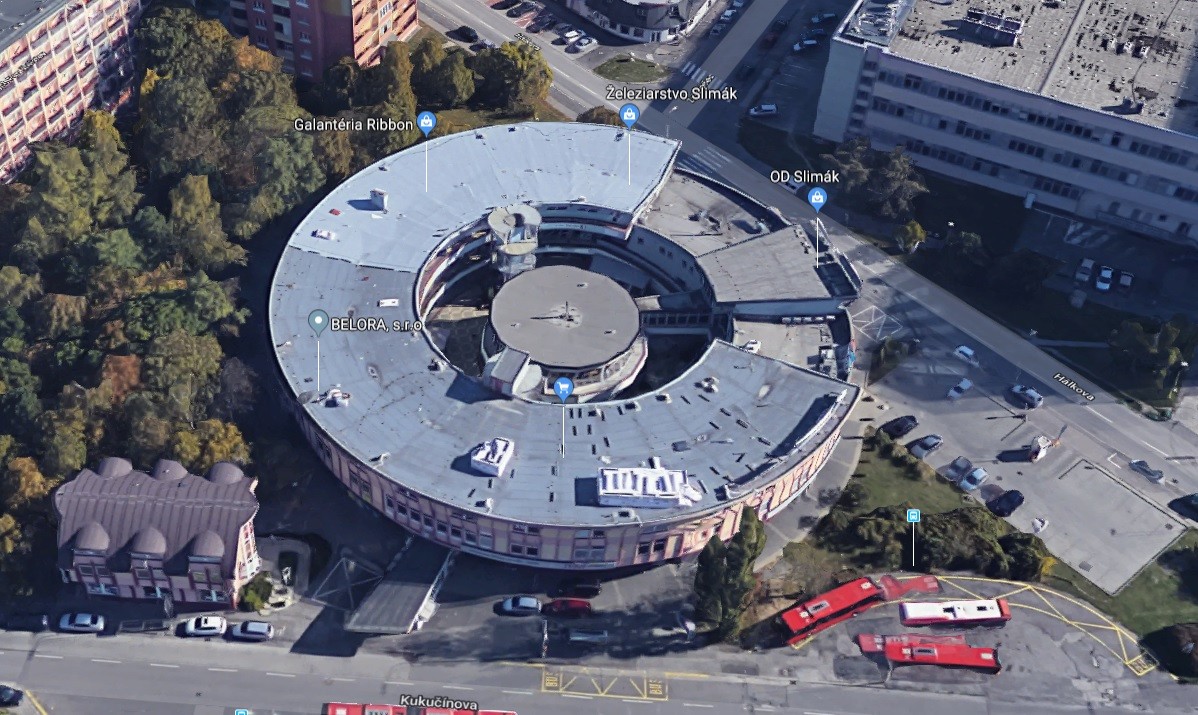 Slimák – nákupné centrum postavené v tvare slimáka sa nachádza na území Nového Mesta v blízkosti výškovej budovy prezývanej „Kukuričák.“