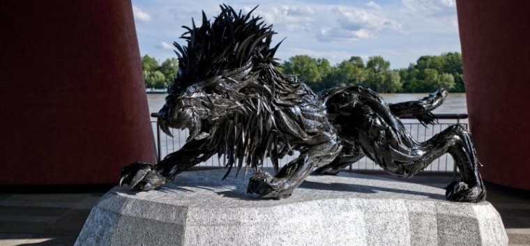 Jeden naježený lev, teda respektíve jeho socha sa nachádza na nábreží Dunaja v blízkosti River parku.