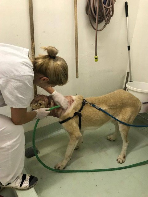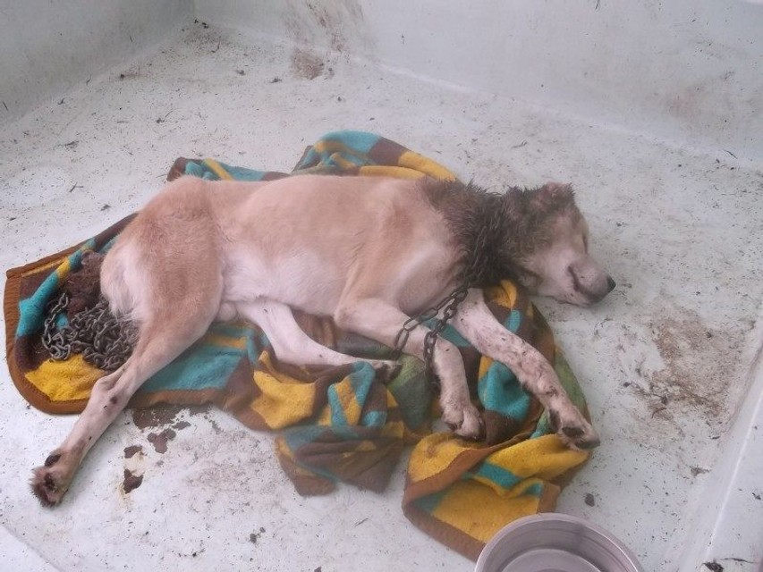 Inšpektori organizácie ostali po príchode na miesto doslova zhrození, psíka delilo od smrti naozaj málo. Nakoniec ho zachránili práve v bratislavskom útulku Slobody zvierat na Poliankach. "Reťaz mal vrastenú do podkožia krku, tá bola zhrdzavená uviazaná okolo stromu. Majiteľka nechcela psíka vydať, išli volať políciu. Žena nakoniec Astorka dobrovoľne vydala. Strom musel byť opílený. Je nepochopiteľné, ako upravená žena s gelovými nechtami dokázala žiť vedľa takto trpiaceho psíka. Astor bol prevezený k nám. Jeho stav bol taký vážny, že sme nevedeli, či prežije. Reťaz, ktorú mal omotanú okolo krku, vážila 6 kg! Na to, aby sme mu ju precvikli, sme ho museli uspať. Veterinárka prišla do útulku aj napriek víkendu, aby ho mohla okamžite operovať - ranu musela operačne zreparovať a predtým riadne vyčistiť - bola plná muších lariev. Tie mal chudák pes aj v očiach, v ušniciach, v papuli a konečníku. Na krku mal viacero zárezov, ktoré mu spôsobil tlak ťažkej reťaze. Nevládal jesť, potreboval infúznu liečbu," informovali ďalej o prípade ochrancovia zvierat.