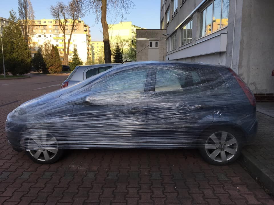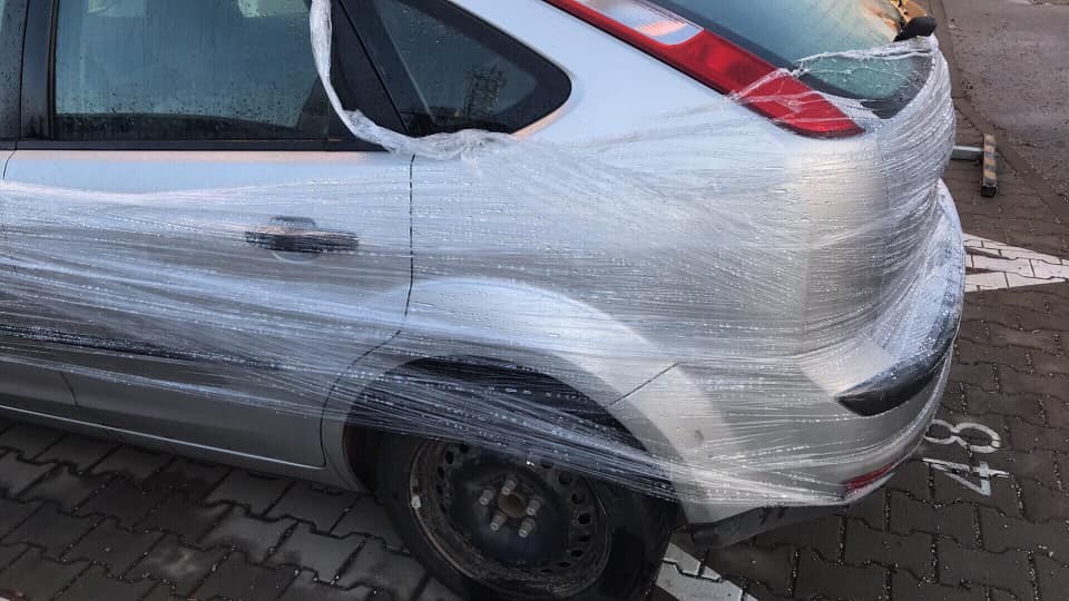 Fotografiu, na ktorej je tmavomodrá Škoda Fabia obalená priesvitnou fóliou, ktorá je navyše omotaná o stĺp dopravnej značky zverejnila dnes ráno na facebookovej stránke Pezinok Lenka Filipková s popisom: „Toto som našla cestou do práce. Fóliová mafia alebo ochrana pred dažďom.“ Z následnej diskusie, ktorá sa pod jej príspevkom rozvinula, však bolo zrejmé, že v tomto prípade pravdepodobne majiteľ vozidla nechal svoje auto na vyhradenom parkovacom mieste a ten, čo si zaň platí a teda má naňho prednostné právo, mu to takýmto relatívne vtipným spôsobom pripomenul.