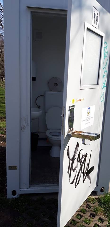 Cez víkend sa na facebookovej stránke Vrakune objavila fotografia toalety, ktorá od júna minulého roku slúži verejnosti vo Vrakunskom lesíku. Búdka, v ktorej sa nachádza WC misa a malé umývadlo bola pomaľovaná grafitmi a nasilu otvorená. Akú hotovosť si z pokladničky na dverách mohli vandali odniesť?