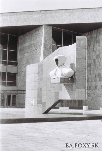Budova je obložená mramorom dovezeným z Kuby a z rovnakého materiálu bol aj podstavec, na ktorom bola naposledy busta Roberta Fica v roku 2010 v rámci umeleckej prezentácie sochára Dalibora Baču. Viac sa o nej môžete dočítať tu: