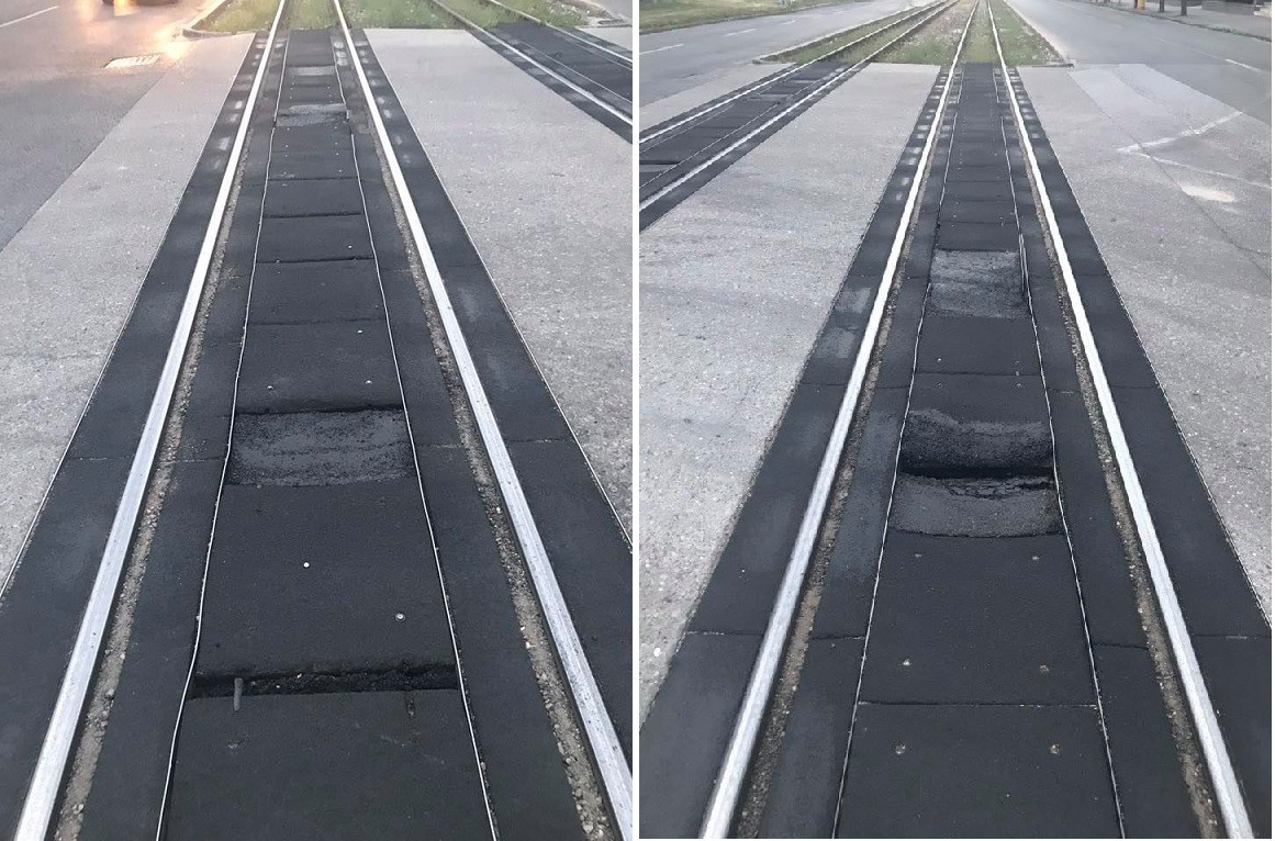 "Električkový prechod na Račianska - Sliačska sa opäť začína rozpadať. Poškodenie je v oboch električkových pruhoch. A to nie je tak dávno, čo tam prebehla rekonštrukcia," upozornili aj prostredníctvom fotografií na facebookovej stránke OZ NÁŠ AHOJ aktivisti.
