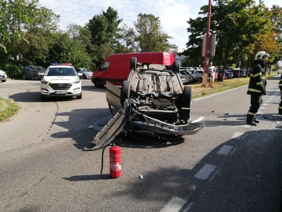 Bratislavskí hasiči aktuálne zasahujú pri dopravnej nehode v hlavnom meste na križovatke ulíc Bajkalská a Trnavská, kde sa auto prevrátilo na strechu.