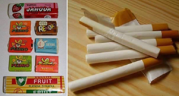Žuvačky sme ako malí takisto milovali. Báli sme sa, že ak ich prehltneme, tak sa nám zlepia črevá a trpezlivo sa učili z nich robiť ústami bubliny. Ako bonus sme v nich pri rozbaľovaní našli aj rôzne farebné obrázky či neskôr dokonca aj tzv. tetovačku na ruku... Nezabudnuteľné pre mnohých boli aj cigaretové žuvačky, ktoré mali nielen podobný tvar ako klasické tabakové výrobky, ale bol na nich zobrazený dokonca ešte aj cigaretový filter...