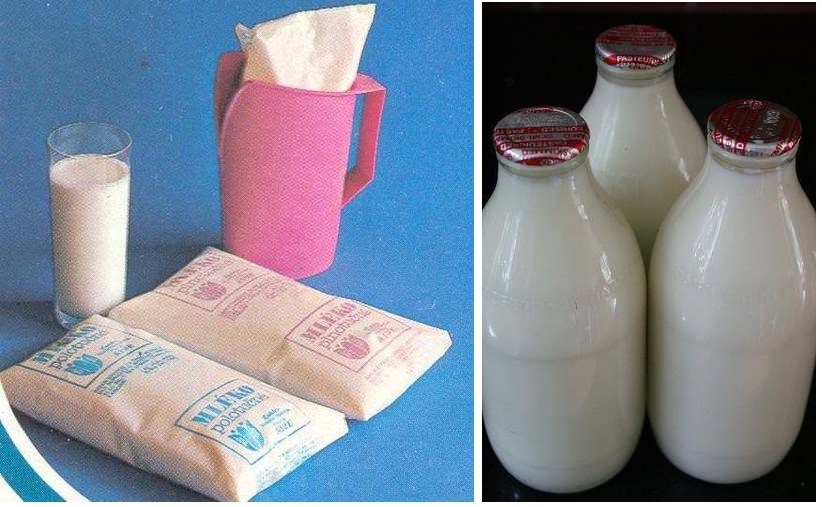 Mlieko sa predávalo v litrových fľaškách a neskôr aj v plastových vreckách, na ktoré ste doma potrebovali ešte aj nádobku s držiakom, aby ste ho mohli bez problémov zo sáčku nalievať do pohárov... Určitý čas sa vyrábalo aj 2,5-decové mlieko, ktoré dostávali školáci spolu s rožkom ako tzv. mliečnu desiatu.
