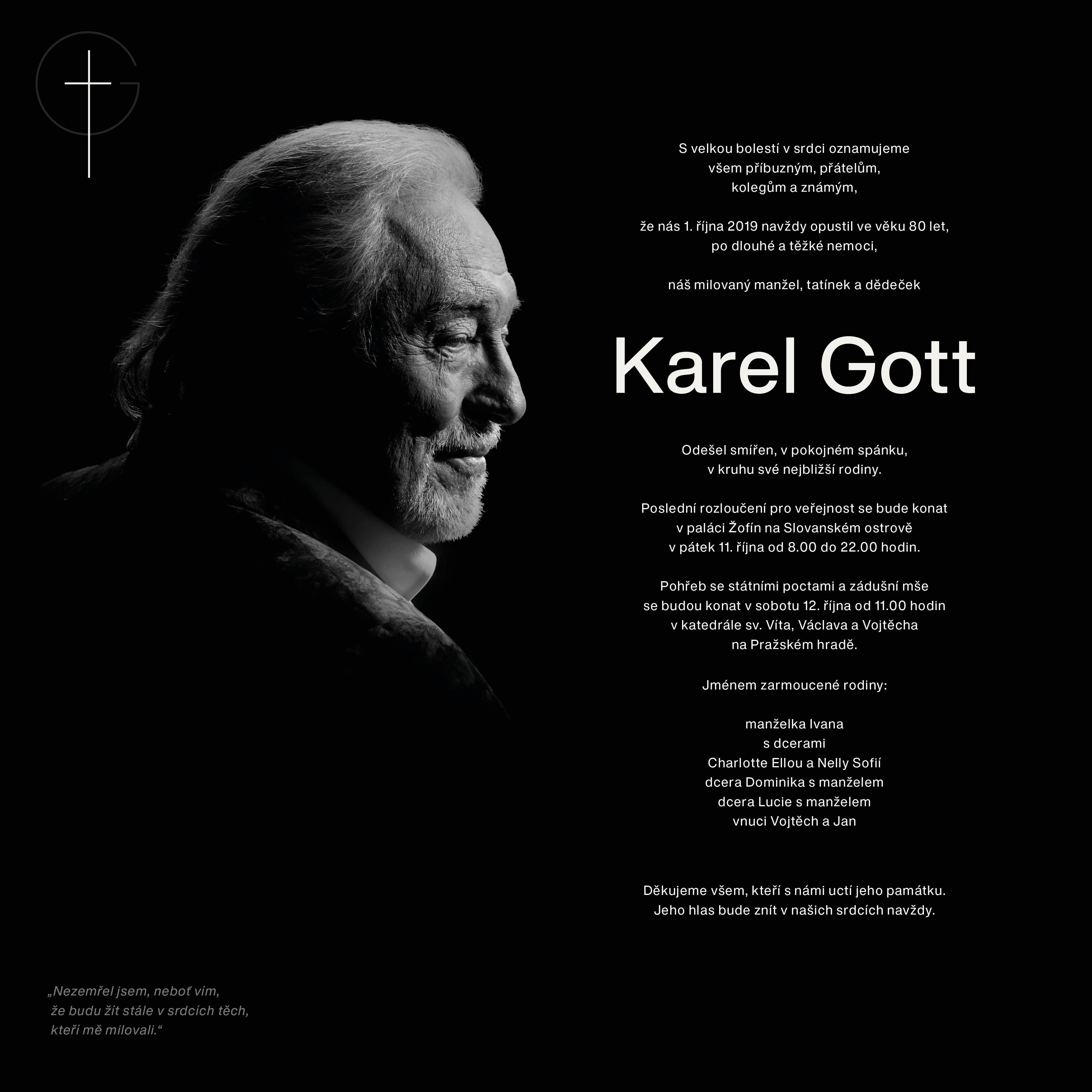 Na oficiálnej stránke Karla Gotta bolo zverejnené parte, ktoré obsahuje aj vetu: "Nezomrel som, lebo viem, že budem stále žiť v srdciach tých, ktorí ma milovali."