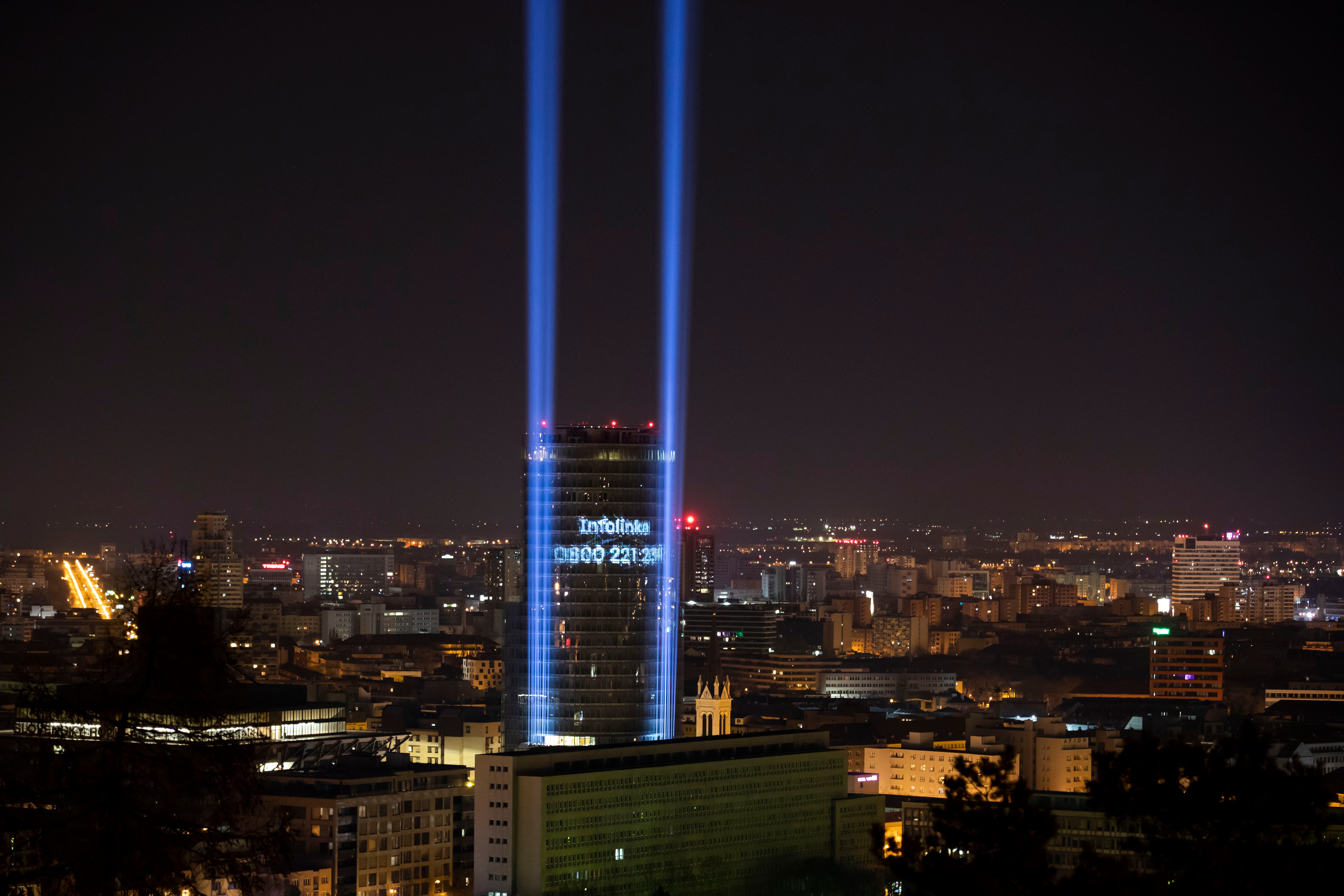 Nakoľko je momentálne pre koronavírusovú pandémiu utlmený aj akýkoľvek nočný život v našom hlavnom meste, tak viacerí si možno všimli, že na bratislavskú oblohu začnú večer po zotmení svietiť dva modré lúče, ktoré pôsobia ako by boli súčasťou nejakej svetelnej alebo laserovej šou. Viacerí tento úkaz nafotografovali a snímky zverejnili na sociálnych sieťach. O čo ide?