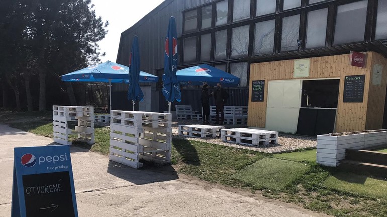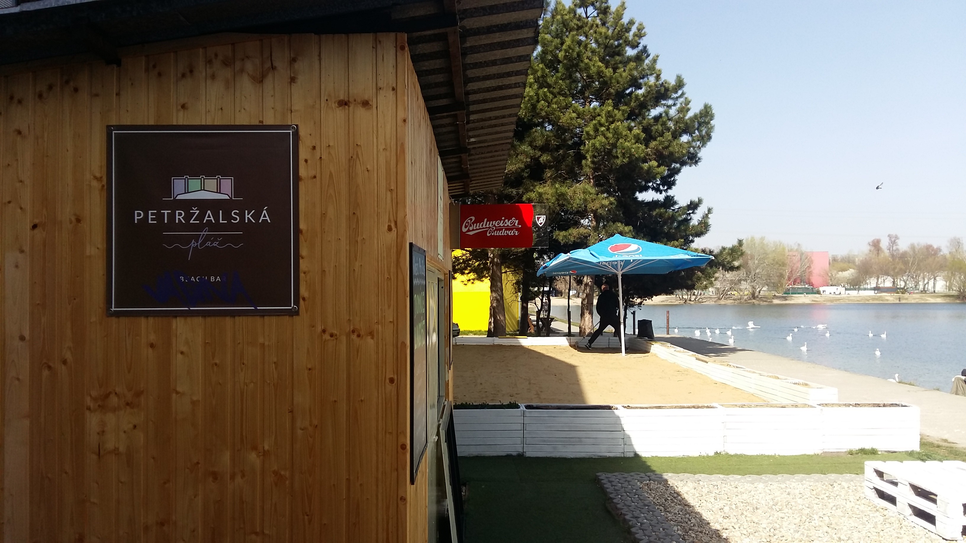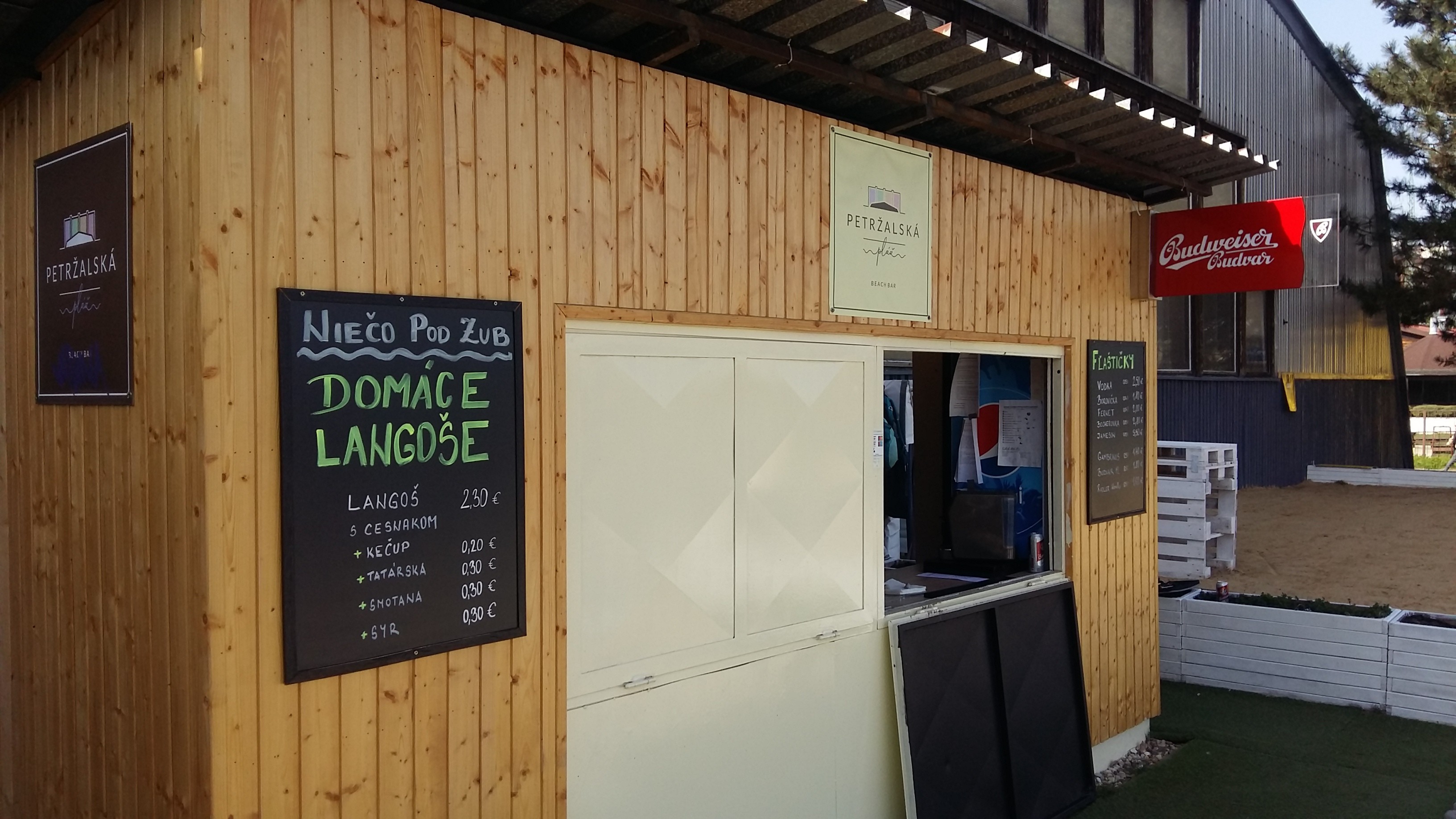 Všetky stánky sú zatvorené. Okrem jediného. Petržalská pláž síce nečapuje pivo ani kofolu, ale môžete si ich kúpiť v plechovke alebo plastovej fľaši. V ponuke je aj tvrdý alkohol v jednorazových fľaštičkách a langoše, ktoré vám vydajú v papierovej škatuli. Predavač má rúško aj rukavice a ľudia sa pristavujú a nakupujú.