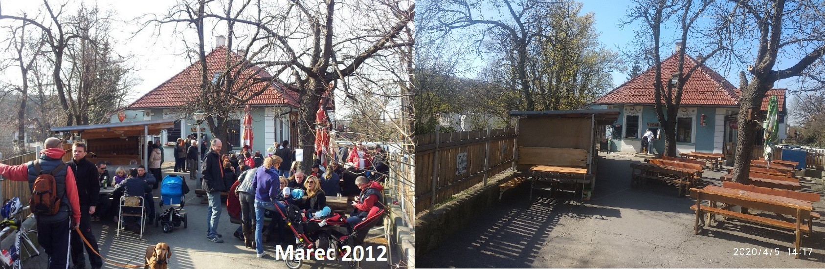 My sme sa dnes vybrali pozrieť sa do krčmy Funus, ktorá býva otvorená celoročne, ale najviac je navštevovaná v období, kedy sa dá sedieť vonku na terase. A ako je zrejmé aj z nášho fotografického porovnávania, tak tá sa vie celkom slušne zaplniť už aj v marci, ak je vonku teplo...