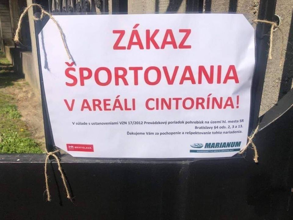 "Nakoľko sú zatvorené športoviská a parky, tak mnohí chodia behávať a cvičiť do areálov cintorínov. Zaznamenali sme takéto aktivity napríklad v Slávičom údolí alebo na Martinskom cintoríne. Na obe miesta sme už museli inštalovať písomné upozornenia o tom, že športovanie na cintoríne je zakázané," pokračuje riaditeľ MARIANUM-u.
