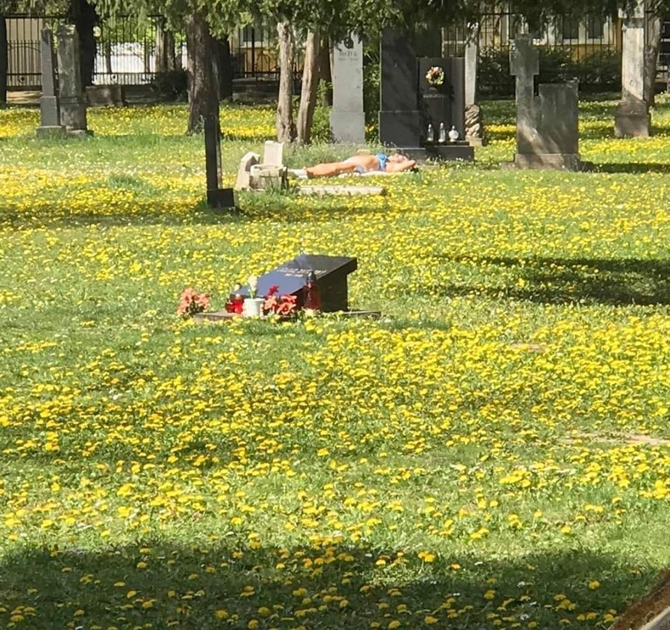 Mimoriadny rozruch a odozvu vyvolala na sociálnych sieťach fotografia panej v stredných rokoch, ktorá včera ležala v plavkách na trávniku Ondrejského cintorína a slnila sa. Vedenie mestského pohrebníctva - spoločnosti MARIANUM je z tohto jej konania zhrozené, nakoľko to nie je ojedinelý prípad, pri ktorom niektorí strácajú akúkoľvek úctu k pietnym miestam...