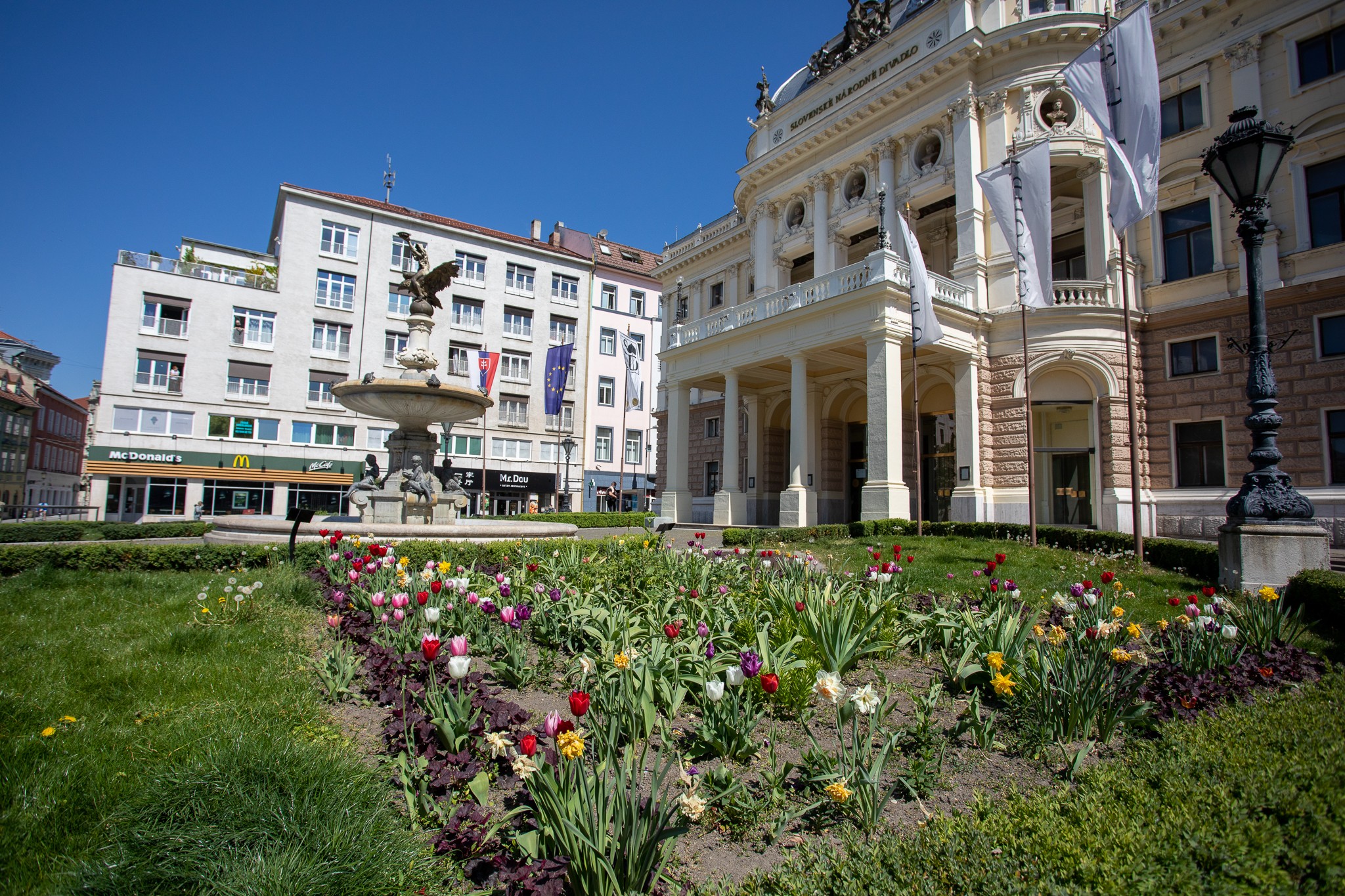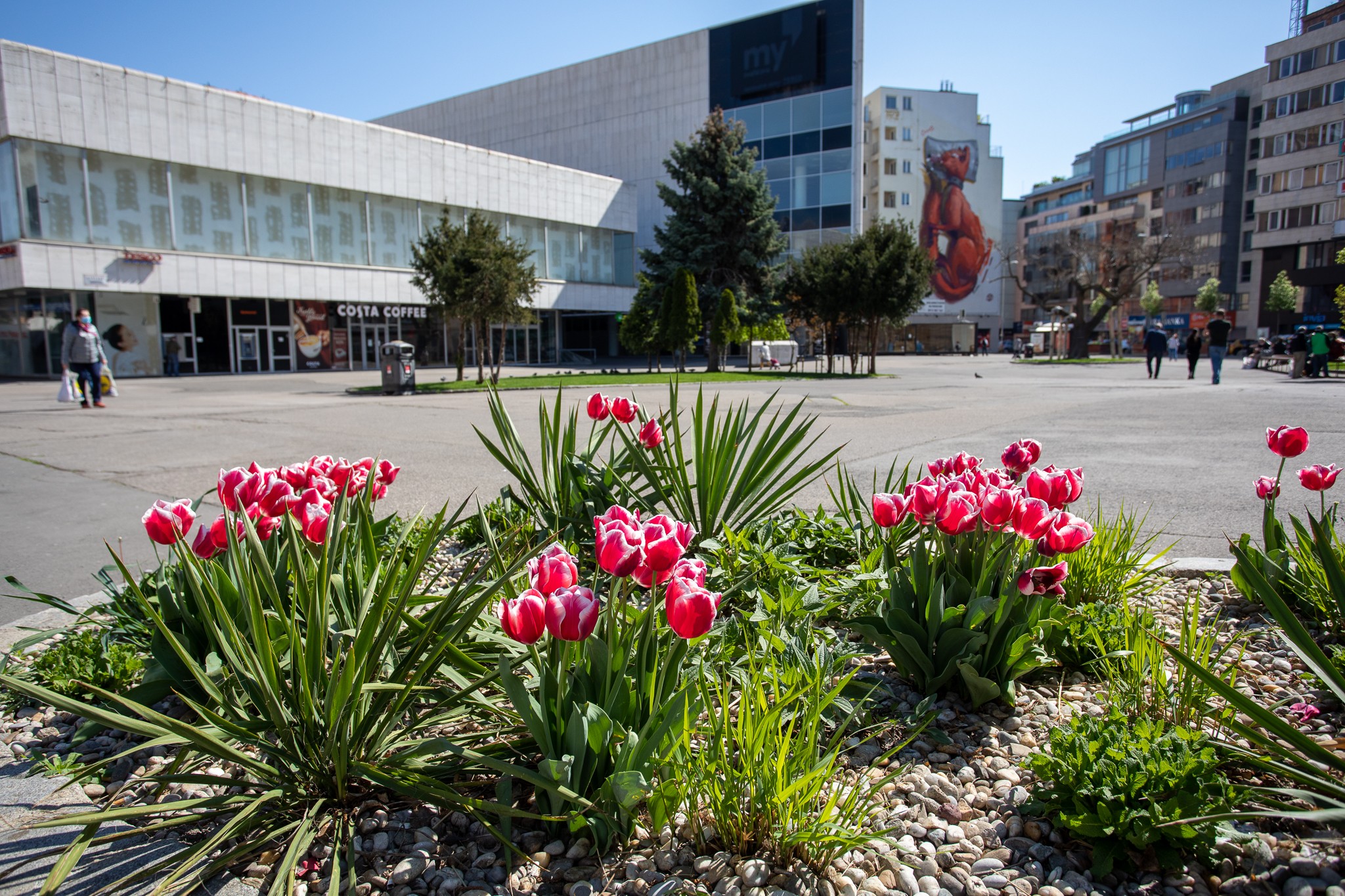 Aj poloprázdne Námestie SNP vďaka kvetom ožilo...