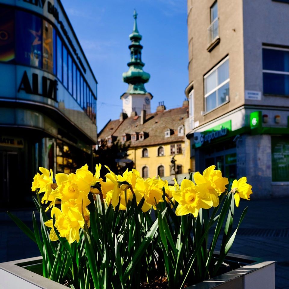 Narcisy na Hurbanovom námestí - v pozadí Michalská veža...