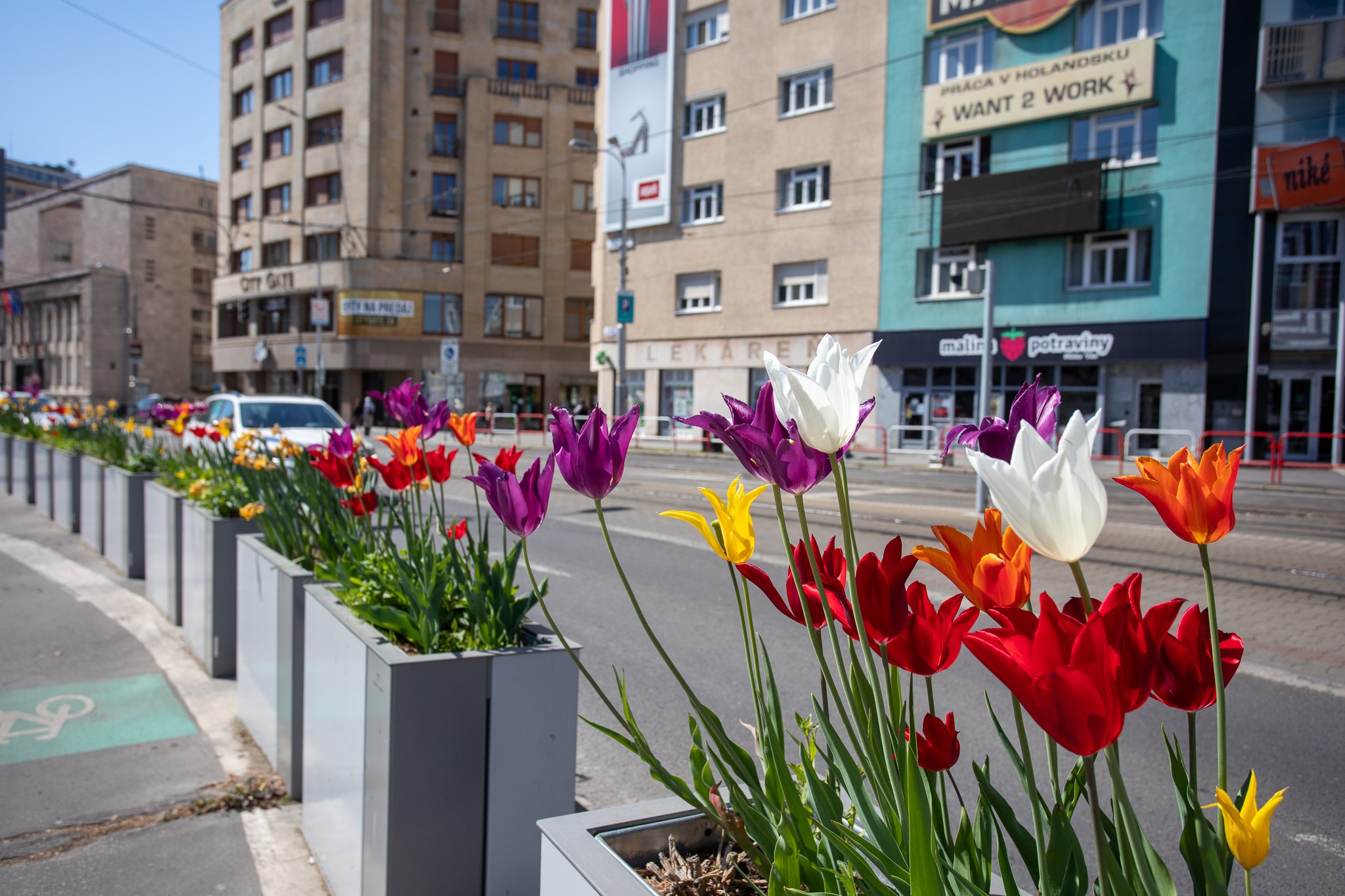 Ak aj v týchto dňoch chodievate pešo cez centrum mesta alebo sa aspoň vo vozidlách MHD či vlastným autom presúvate cez Bratislavu, tak ste si možno všimli, že na viacerých miestach v blízkosti rušných komunikácii kvitnú kvety všetkých možných farieb. My sme ich videli na Pražskej, Košickej či Trnavskej ulici, ale sú aj pred SND alebo v záhrade Prezidentského paláca.