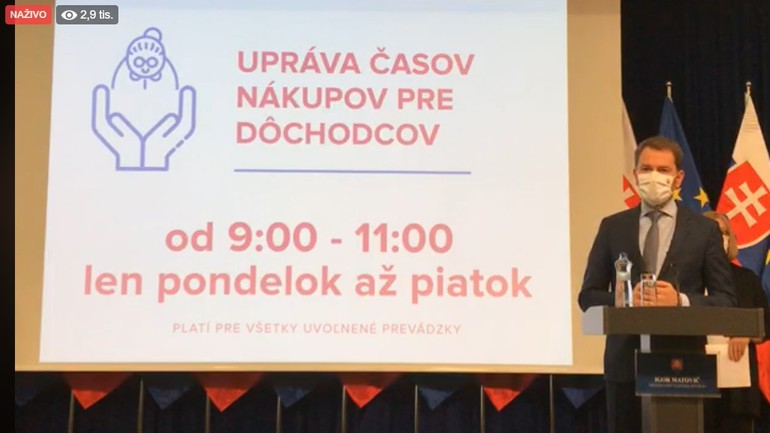„S účinnosťou od 22. apríla 2020 do odvolania sa prevádzkovateľom prevádzok uvedených v písmene A) okrem bodu 3. a 11. a B) nariaďuje umožniť v dňoch pondelok až piatok v čase od 9:00 hod. do 11:00 hod. vstup iba osobám nad 65 rokov. V inom čase je osobám na 65 rokov zakázané tieto prevádzky navštevovať a týmto prevádzkam osoby nad 65 rokov obsluhovať,“ tak znie citát z opatrení Úradu verejného zdravotníctva Slovenskej republiky podpísaných hlavným hygienikom.